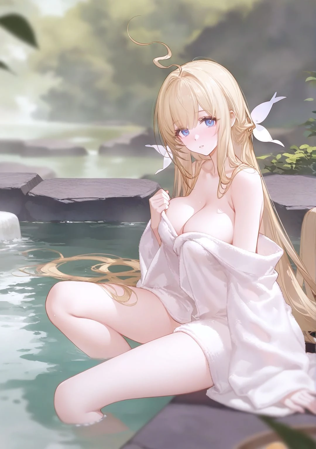 Massena Hot Spring Skinmassena (azur lane), hot spring skin, 1girl, blonde hair, blue eyes, onsen,