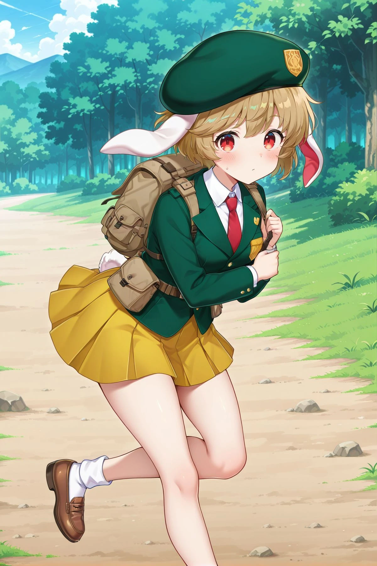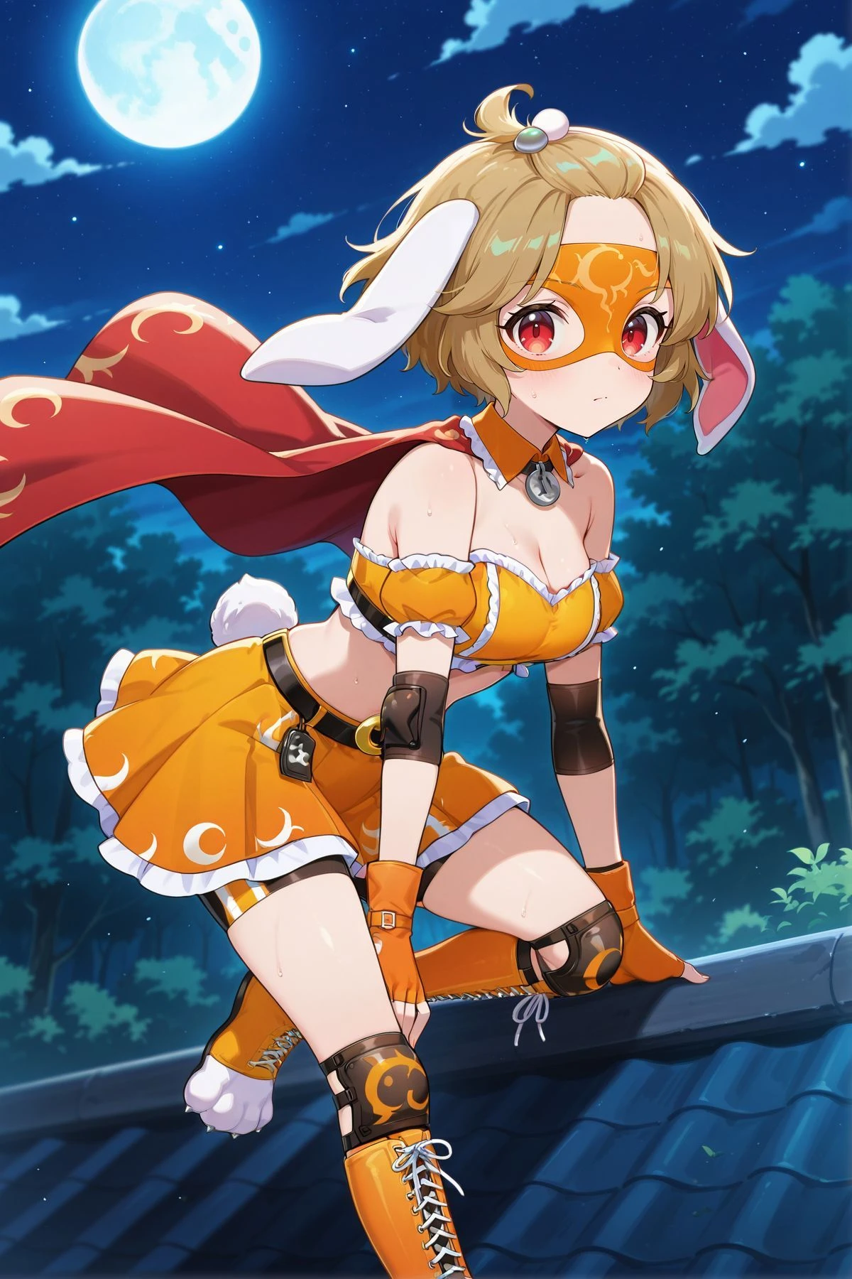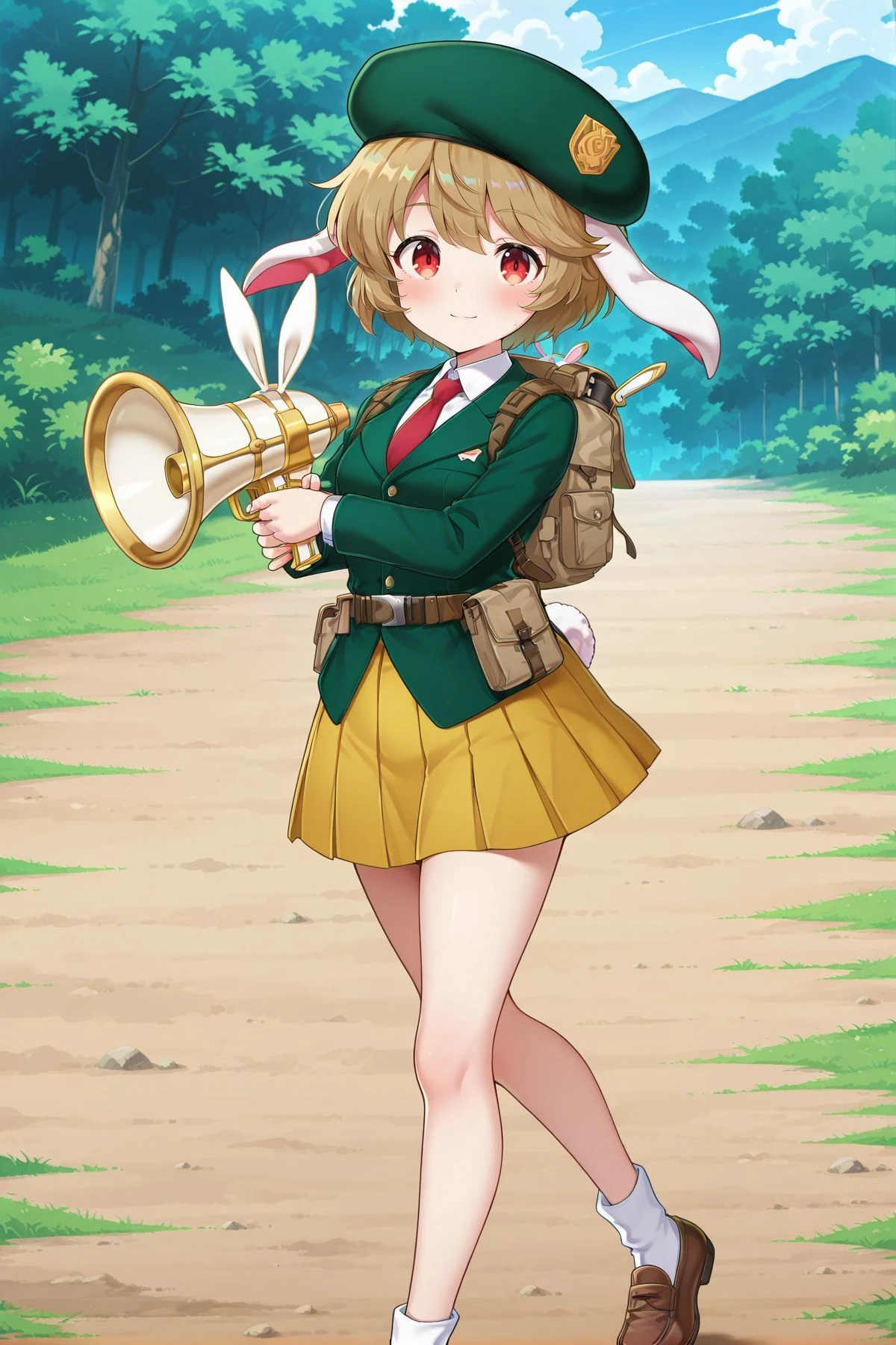 ringo, 1girl, solo, red eyes, brown hair, short hair, rabbit ears, floppy ears, rabbit tail,, ringo \(eagle ravi special forces\), alternate costume, green headwear, beret, red necktie, green jacket, collared shirt, white shirt, yellow skirt, pleated skirt, brown belt, belt bag, white socks, brown footwear, backpack, brown bag, holding lunatic gun,ringo, 1girl, solo, red eyes, brown hair, short hair, bangs pinned back, rabbit ears, floppy ears, rabbit tail, medium breasts,, ringo \(codename mandarin\), alternate costume, silver dango hariclip, domino mask, orange mask, red cape, bolt symbol, detached collar, orange collar, bare shoulders, cleavage, wrestling outfit, crop top, orange shirt, orange armband, frilled armband, elbow sleeve, fingerless gloves, orange gloves, midriff, black belt, crescent belt buckle, orange skirt, bike shorts under skirt, black shorts, black knee pads, kneehighs, cross-laced footwear, orange boots, paw shoes,ringo, 1girl, solo, red eyes, brown hair, short hair, rabbit ears, floppy ears, rabbit tail,, ringo \(white rabbit investigation team\), alternate costume, white headwear, orange necktie, crescent pin, military uniform, gold trim, double-breasted, white jacket, long sleeves, collared shirt, white shirt, white gloves, pleated skirt, white skirt, black belt, utility belt, thigh boots, white boots, sword, sheath, ringo, 1girl, solo, red eyes, brown hair, short hair, rabbit ears, floppy ears, rabbit tail, aged up,, ringo \(the orange eagle ravi\), alternate costume, orange beret, dango hat ornament, red necktie, orange jacket, long sleeves, white buttons, white shirt, collared shirt, pleated skirt, white skirt, black kneehighs, brown shoes, shoulder bag, green bag, weapon on back, assault rifle,ringo, 1girl, solo, red eyes, brown hair, short hair, rabbit ears, floppy ears, rabbit tail,, ringo \(veteran detective of the capital\), alternate costume, white space helmet, unworn helmet, helmet on back, brown coat, open coat, long sleeves, spacesuit, grey suit, gold trim, black belt, crescent belt buckle, grey skirt, pencil skirt, grey pantyhose, multicolored boots, grey boots, yellow boots, holding weapon, rocket launcher, Illustrious V1