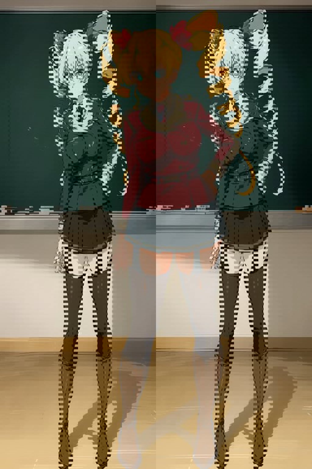 Due to the fact that the model was trained on only 8 images, sometimes you need to lower the weight, especially in the case of other clothes than school uniform