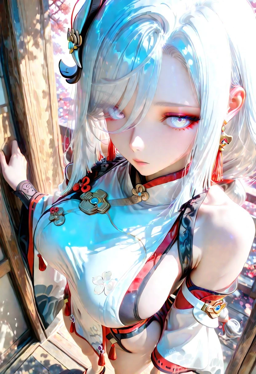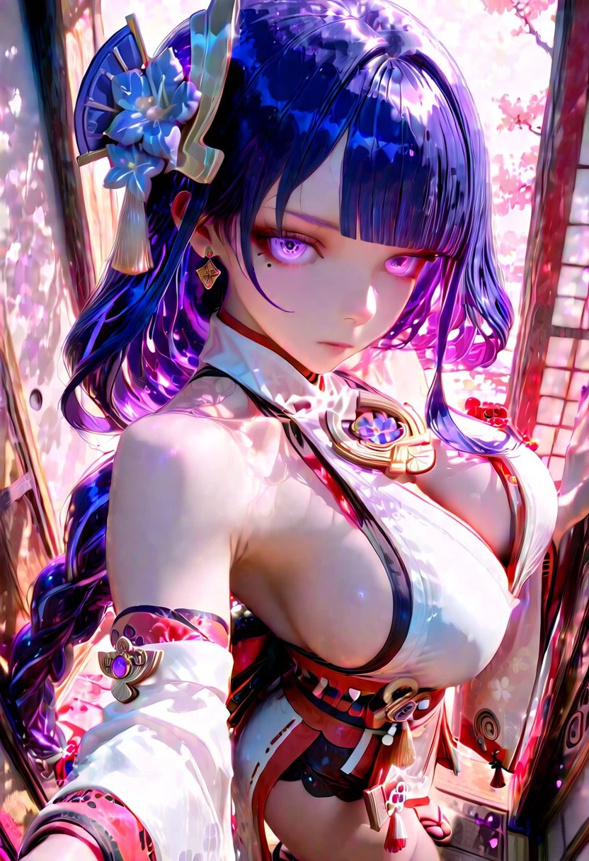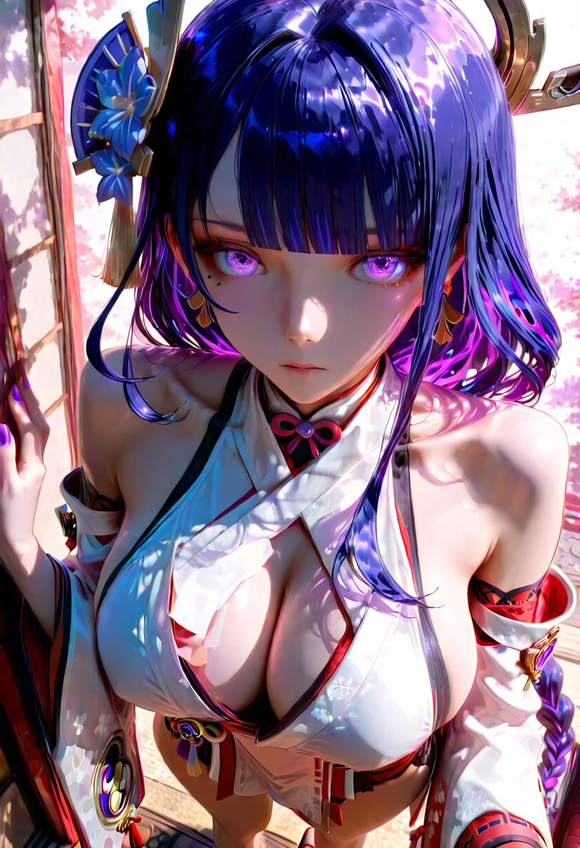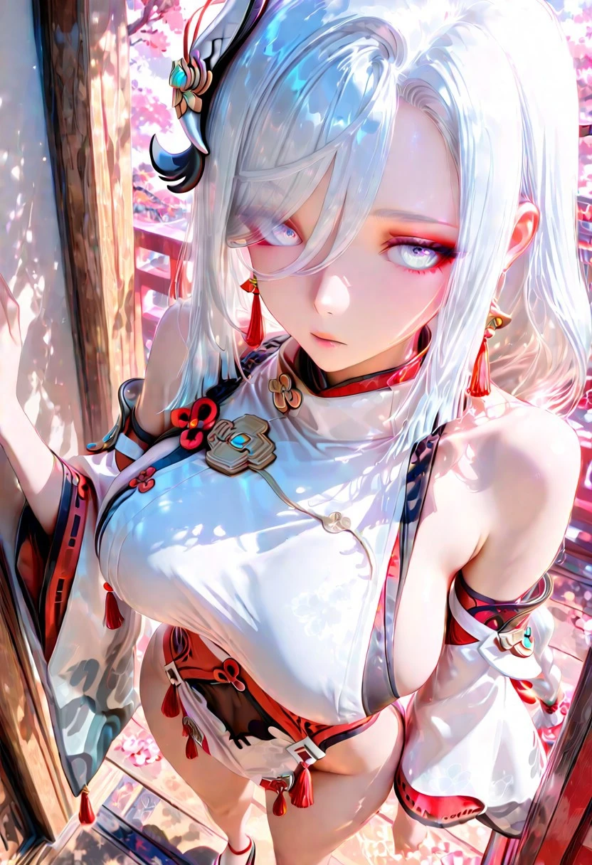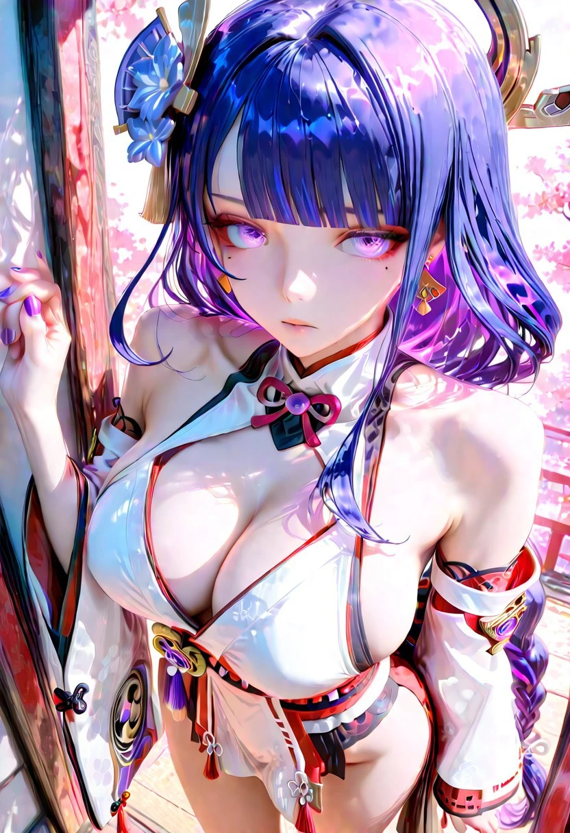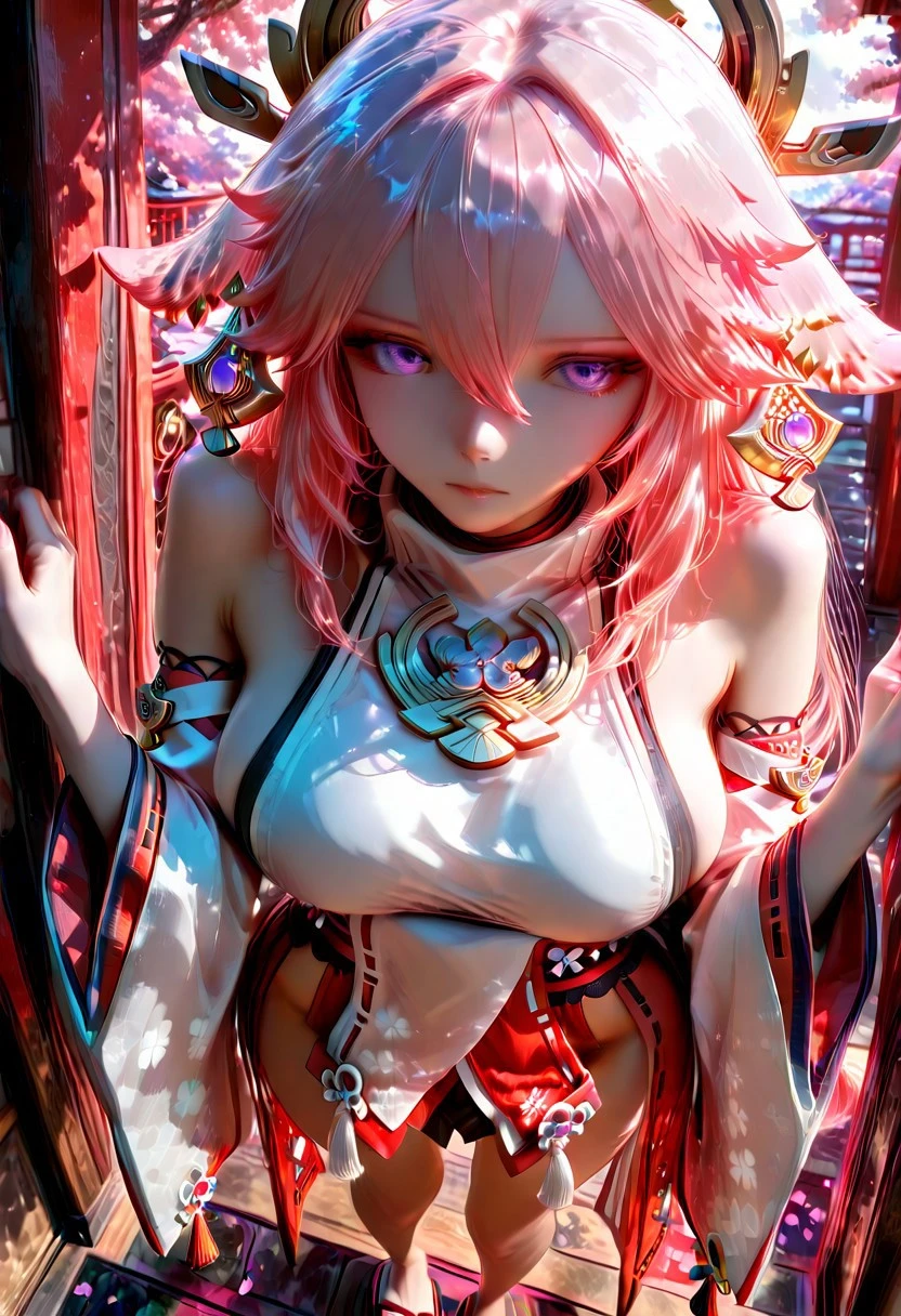 yae miko clothes,white kimono, japanese clothes, long sleeves, wide sleeves, detached sleeves, bare shoulders, sleeveless shirt, sideboob, okobo, sandals