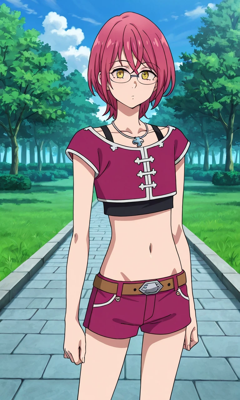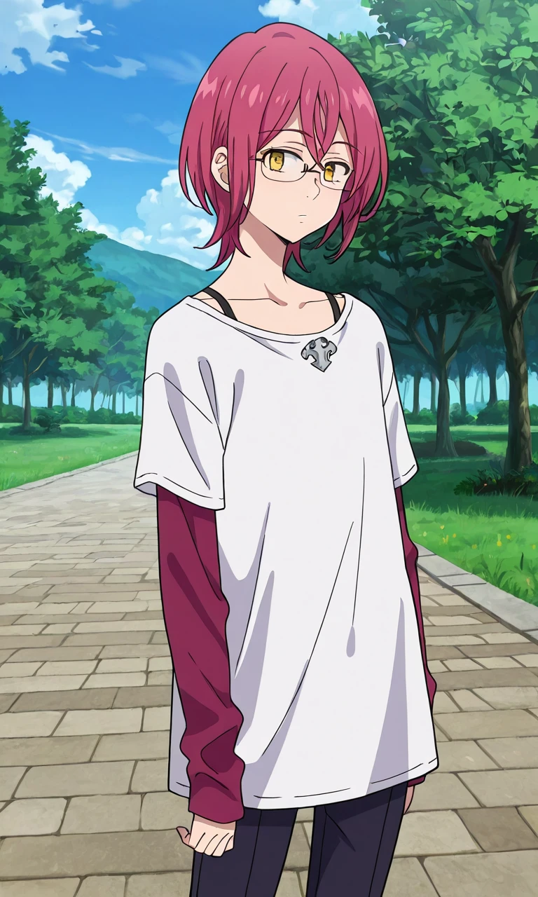 gowthernnt, glasses, yellow eyes, pink hair, short hair, red hair
