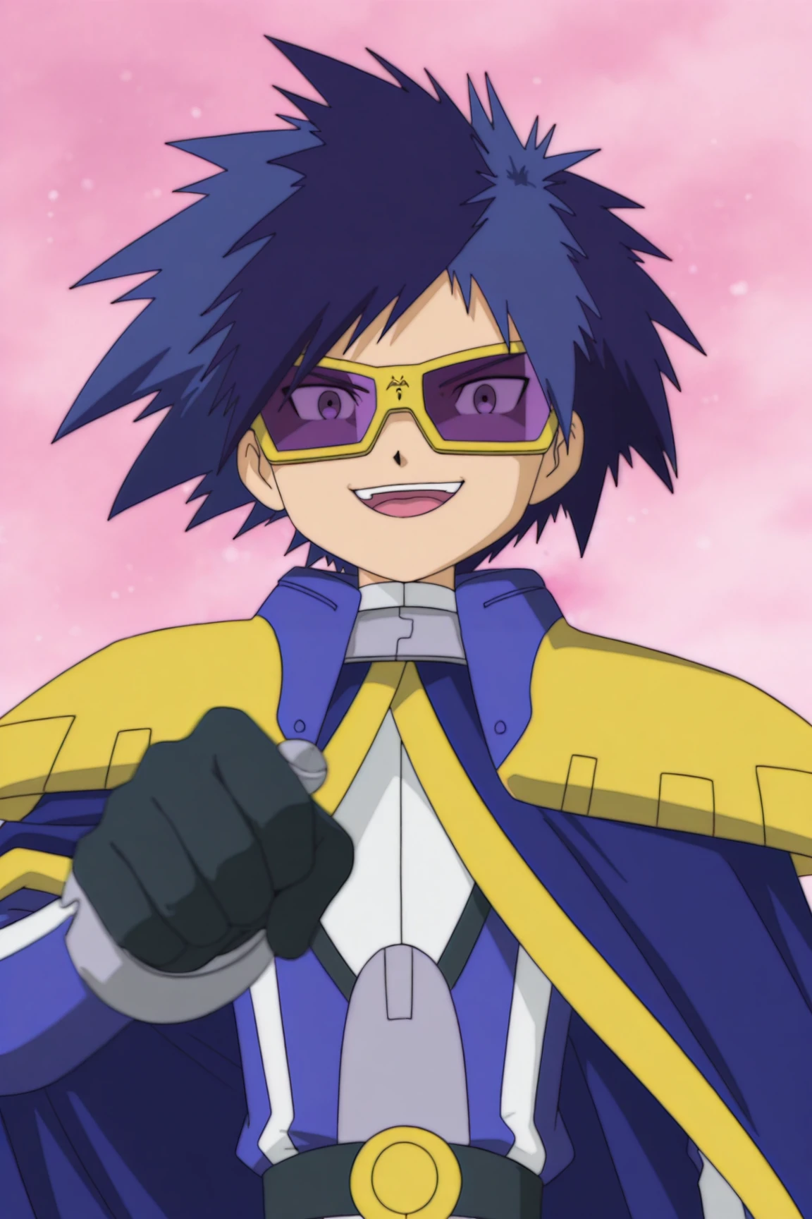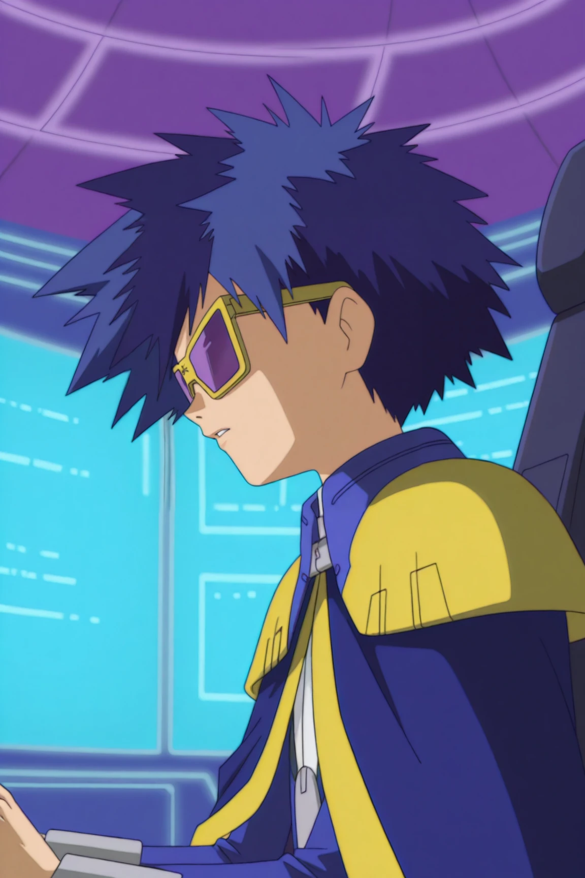 digikaiser, blue hair, blue eyes, sunglasses