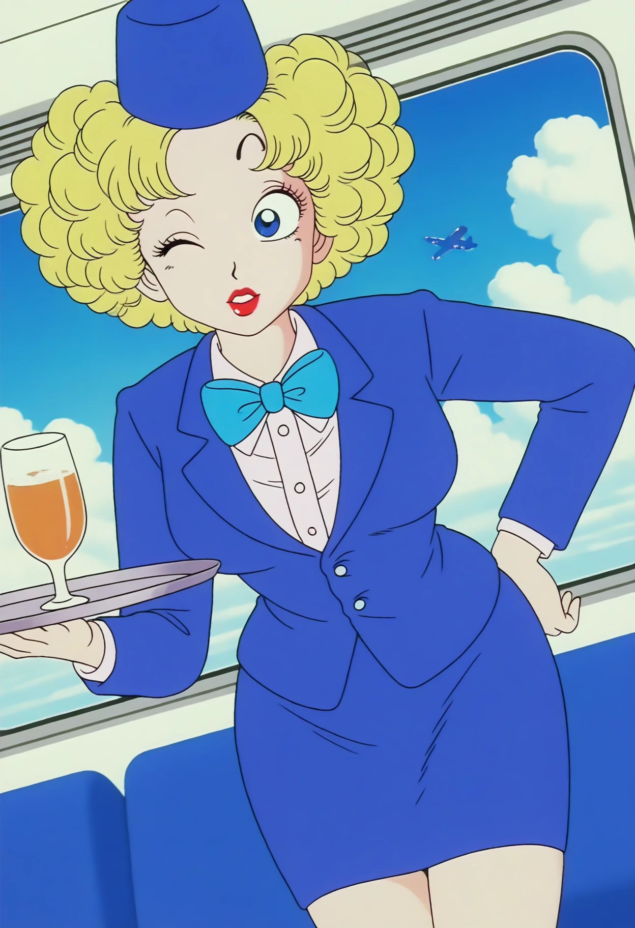 The Flight Attendant appears in the episode "Rivals and Arrivals", where she hears Master Roshi's request to land the plane quickly because he urgently needs to poop.