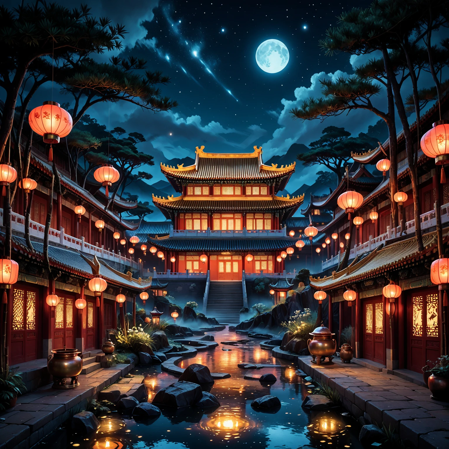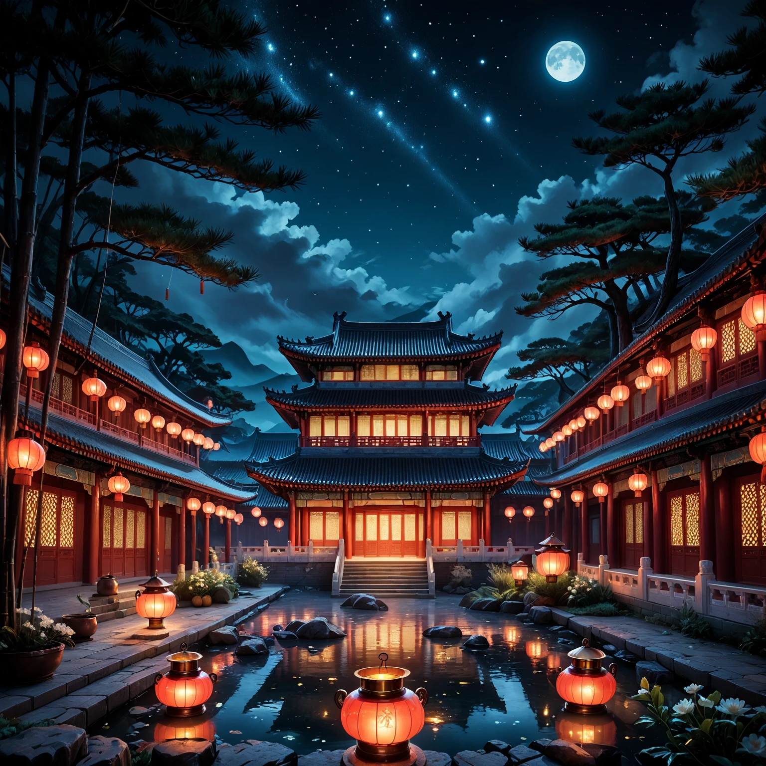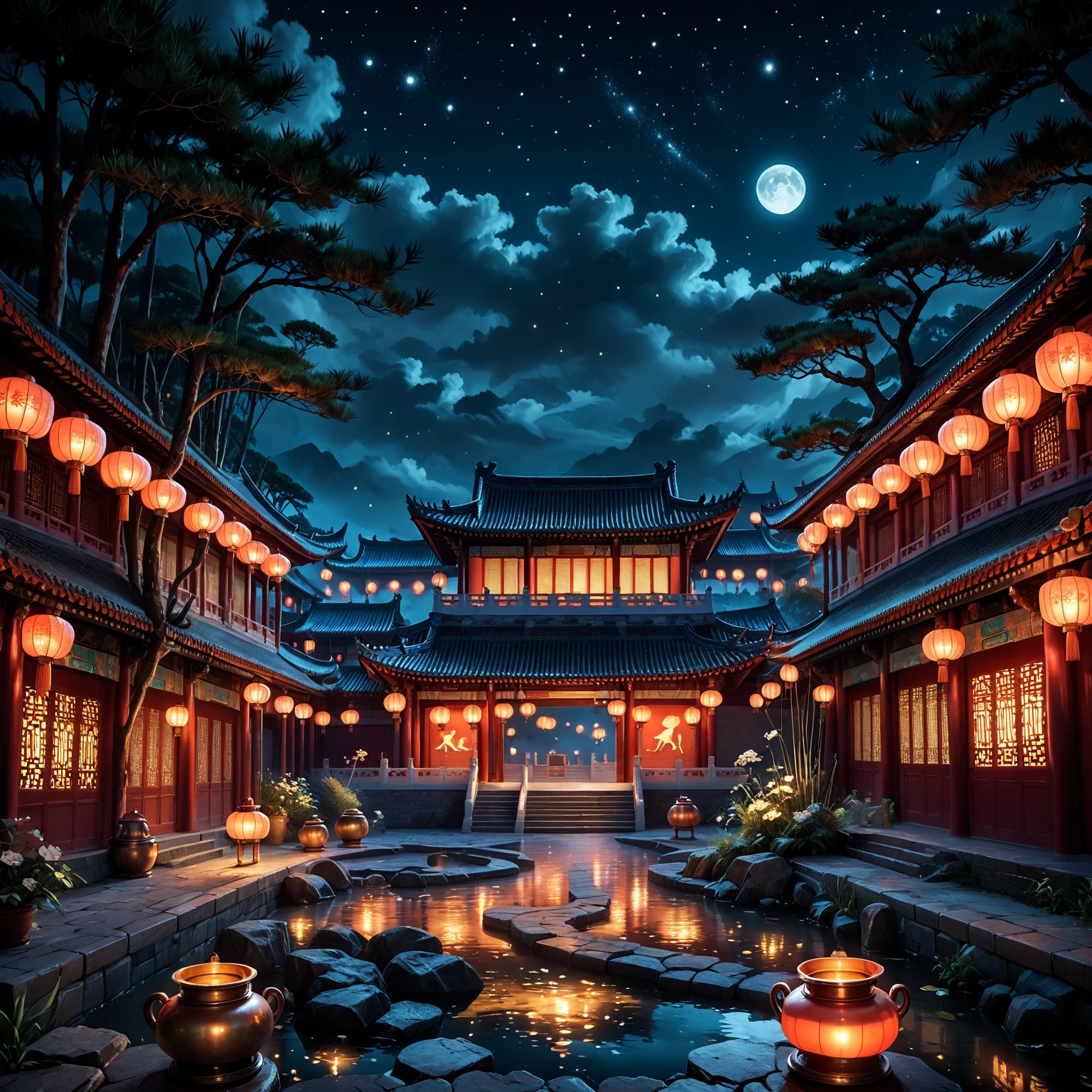 Experience serene courtyards bathed in soft lantern light and starry reflections 🌌💫, complete with phoenix motifs, dragon carvings, and blooming peonies under moonbeams 🌸🐉. This LoRA transforms your prompts into enchanting nocturnal scenes of imperial seclusion and timeless grandeur.