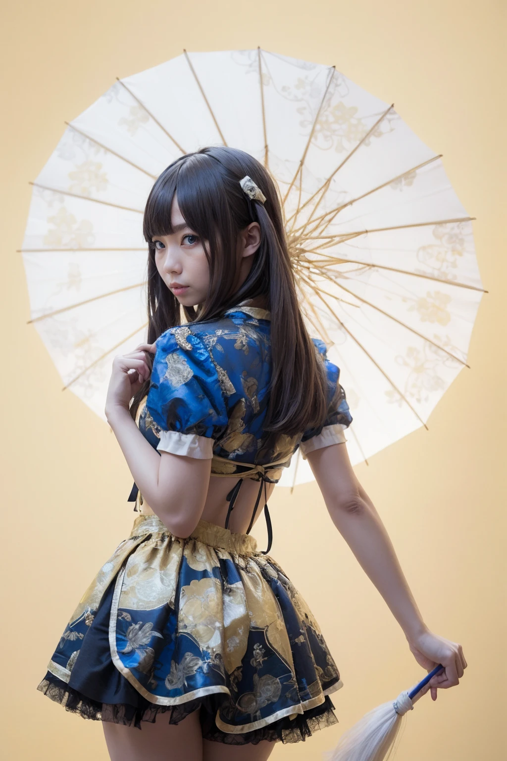 This is a Sexy Qipao inspired look, with Asian themes such as temples, statues and Asian Umbrellas (Wagasa)
