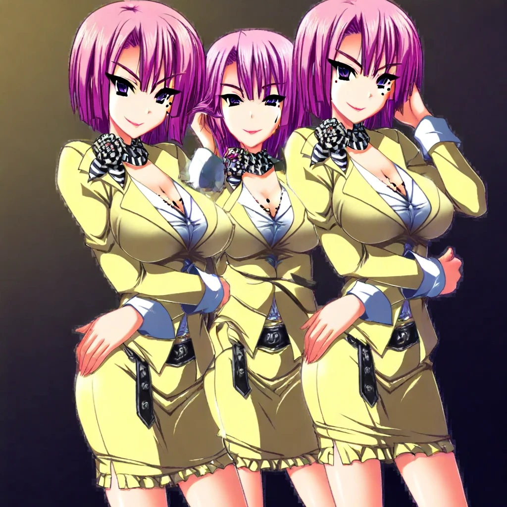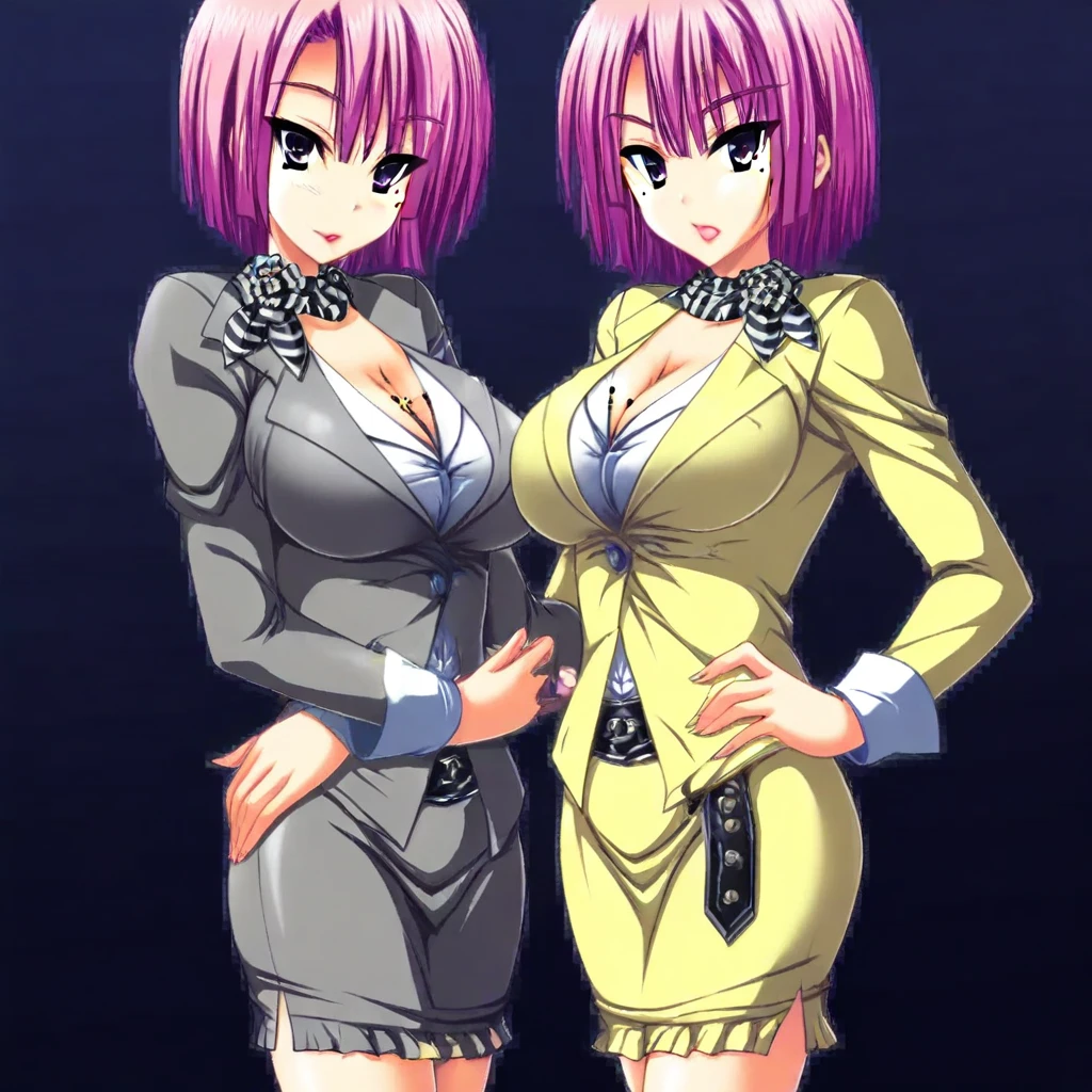 yuri-suit, neckerchief, skirt suit, yellow jacket, white shirt, cleavage, pencil skirt, belt,