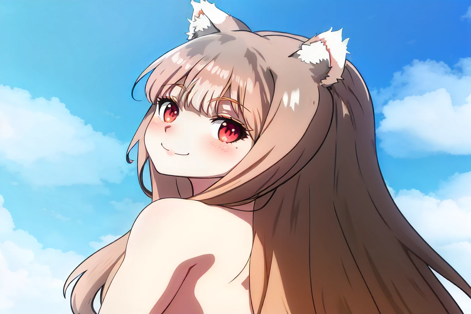 Sample prompt: holo, 1girl, solo, long hair, bangs, brown hair, red eyes, wolf ears, wolf girl, animal ears, (tail is optional cause i used only 6 images)