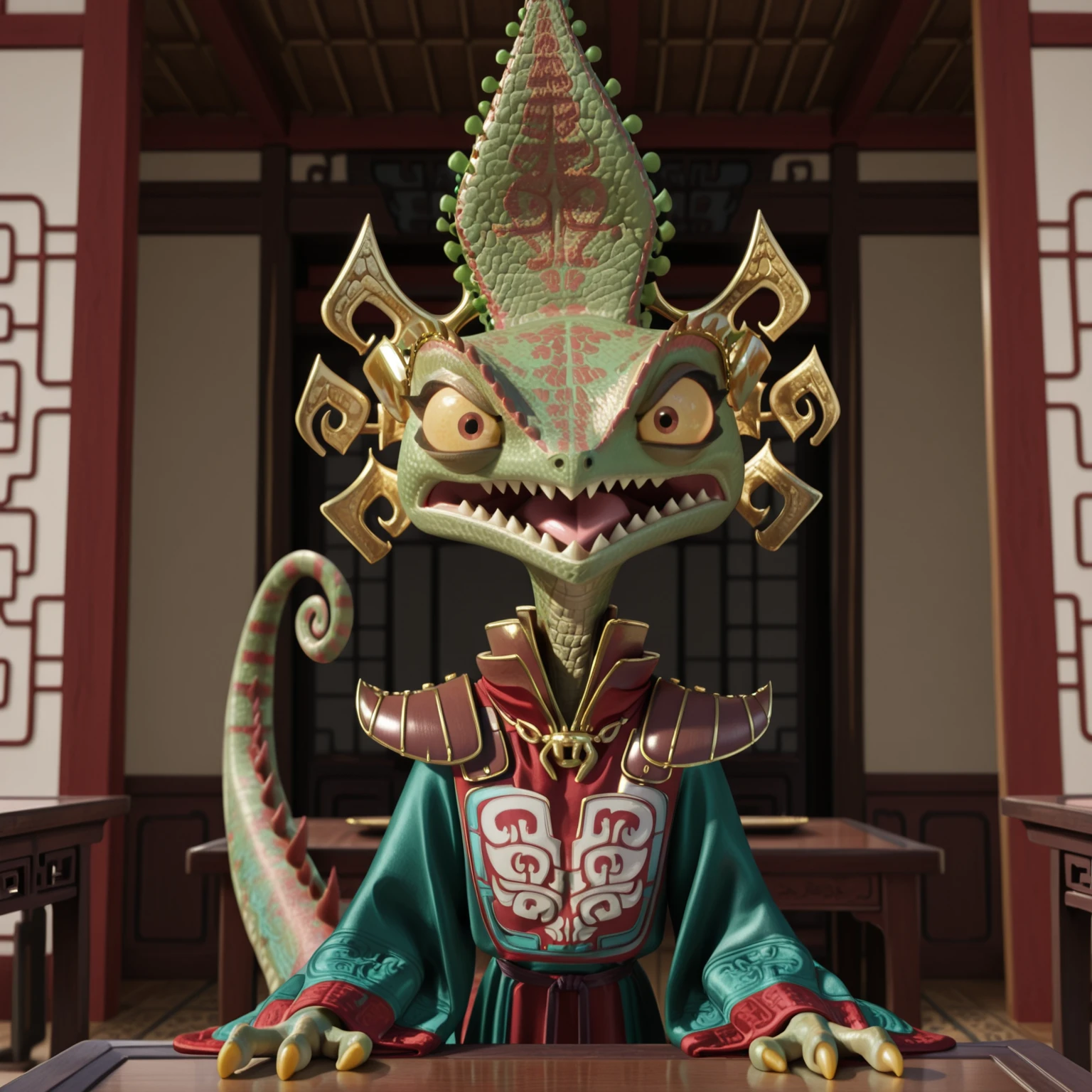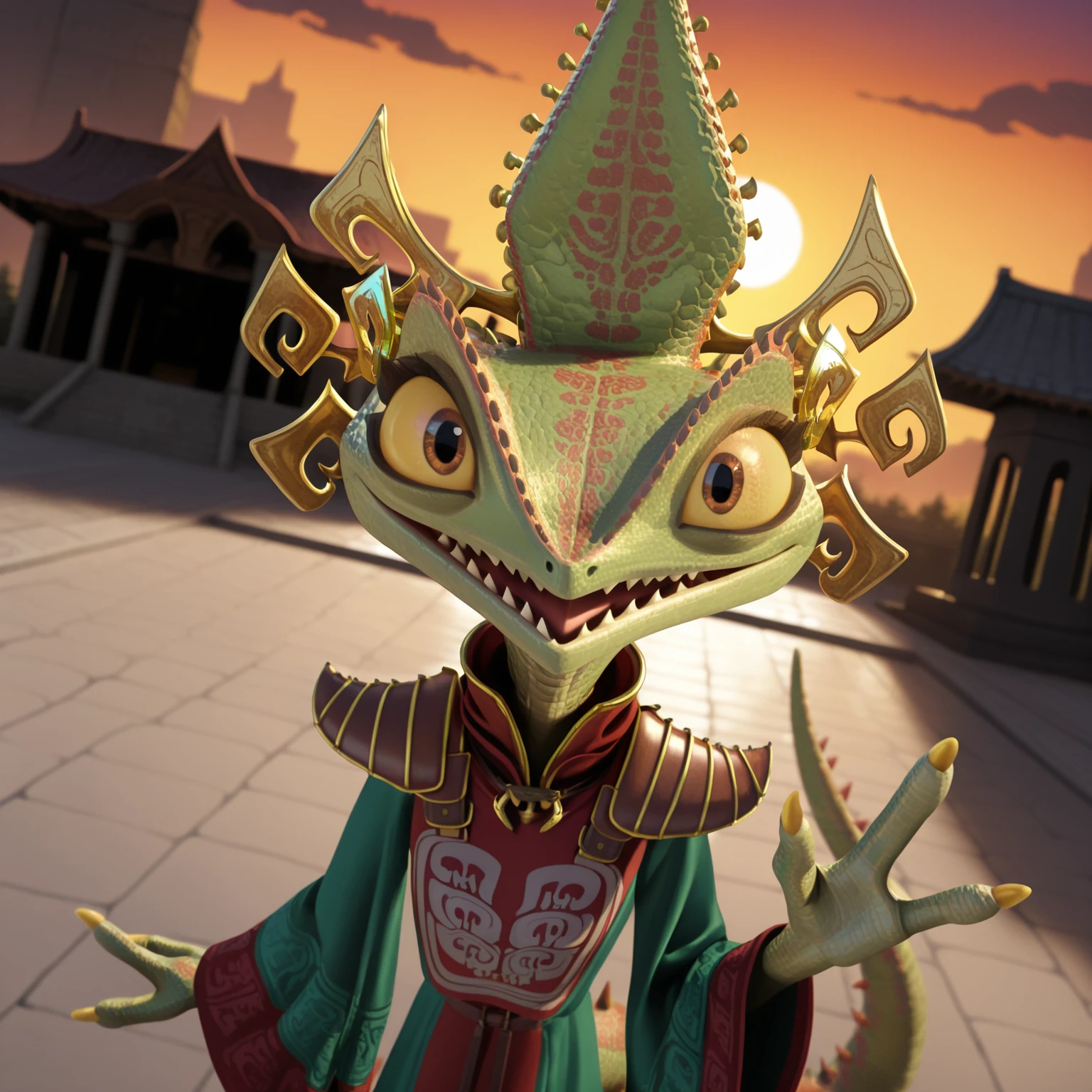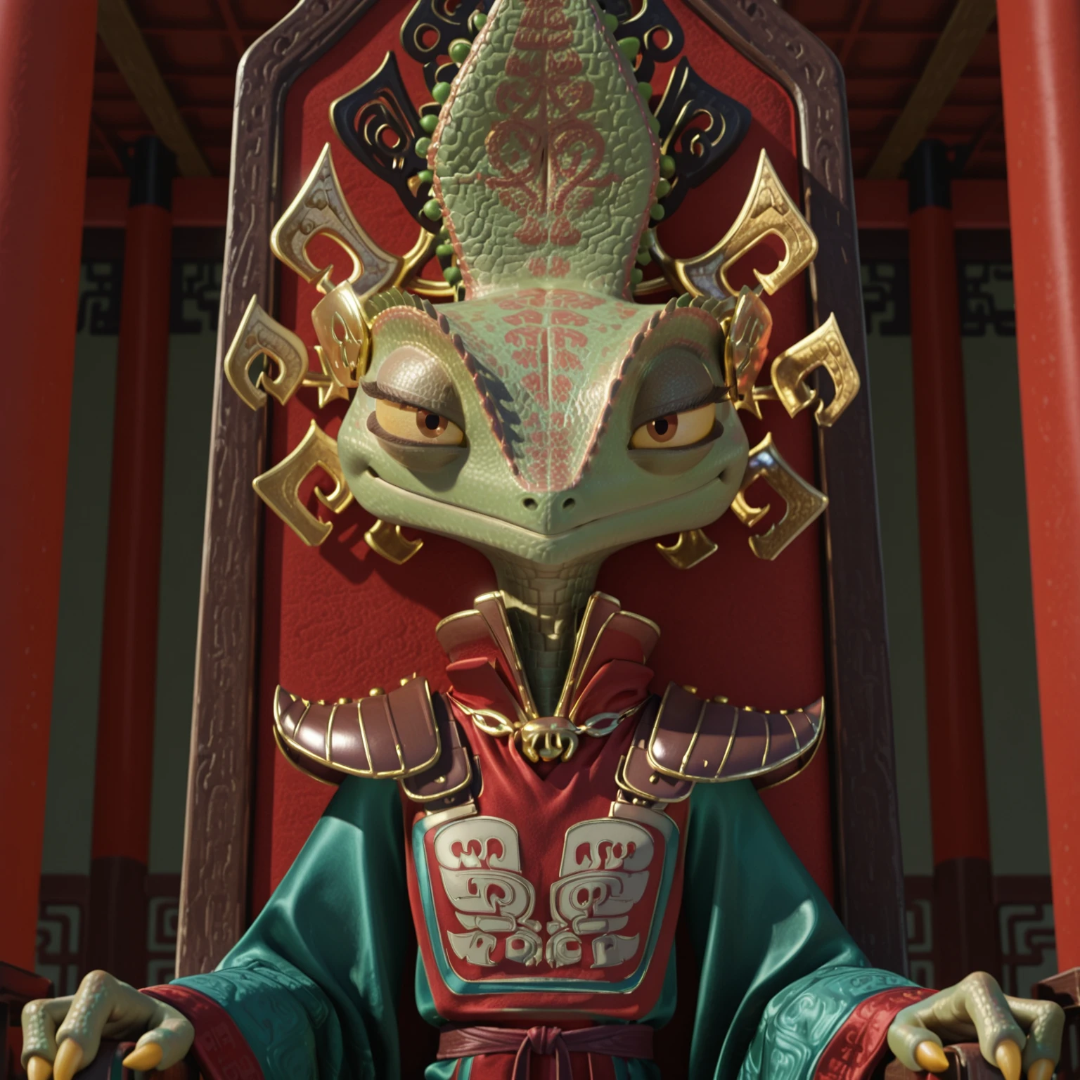 The Chameleon from Kung Fu Panda 4. I haven't seen anyone make an Illustrious version of her yet, so I went ahead and made one. This was trained with about 40 screencaps from the movie. It'll get the general look of the robe design just fine, but it's pretty tough to get the gold headwear to be removed since the AI thinks it's a part of her body. You can remove it by lowering down the weight, but it might change the character's appearance drastically. Also she is a character with 3 fingers, so it can be tough sometimes for the AI to generate the right amount of fingers. Azure & Crimson Mix works extremely well with this lora if you need a checkpoint recommendation.