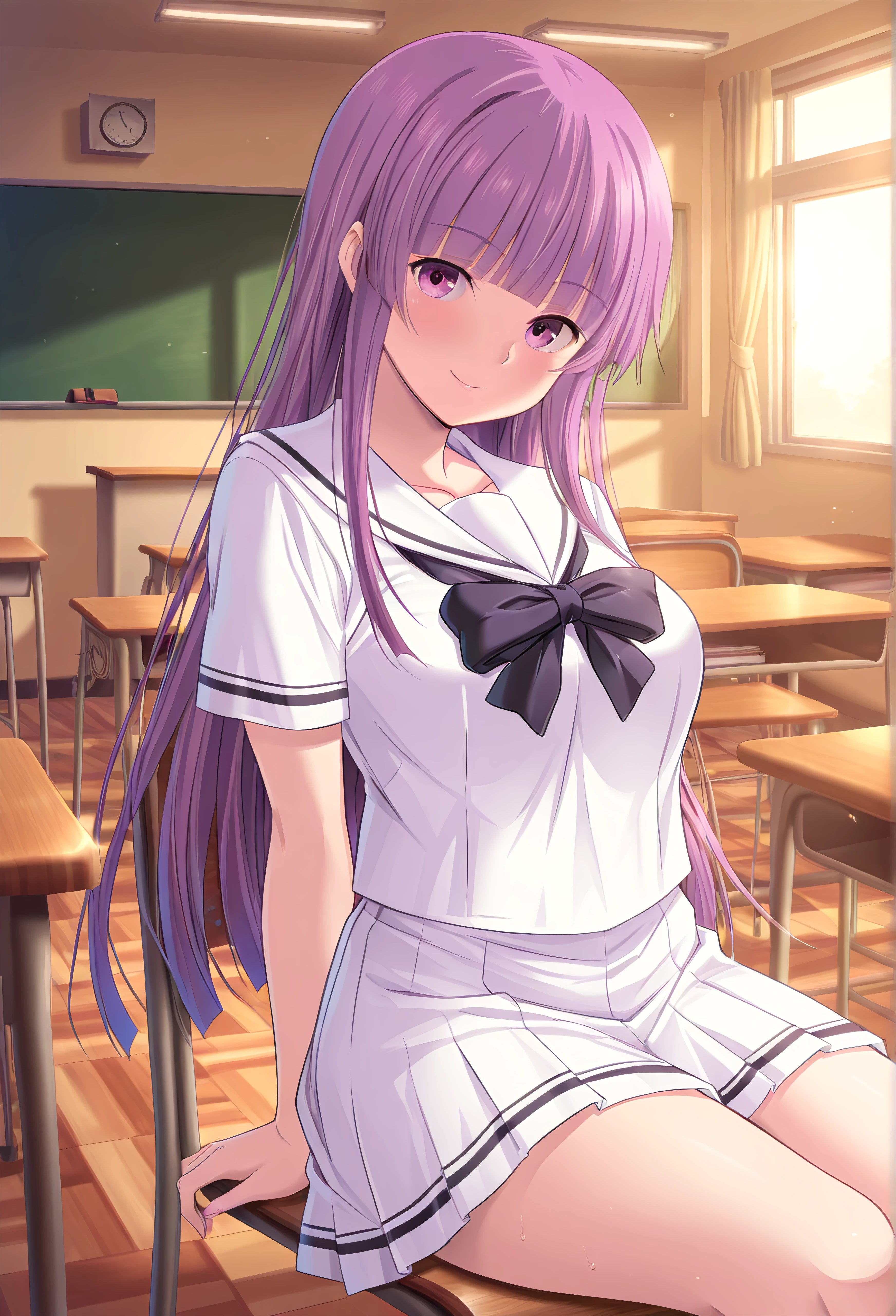 Outfit (Casual): yasakaaoricasual, very long hair, white sailor shirt, white sailor skirt, black bowtie, serafuku, pink panties