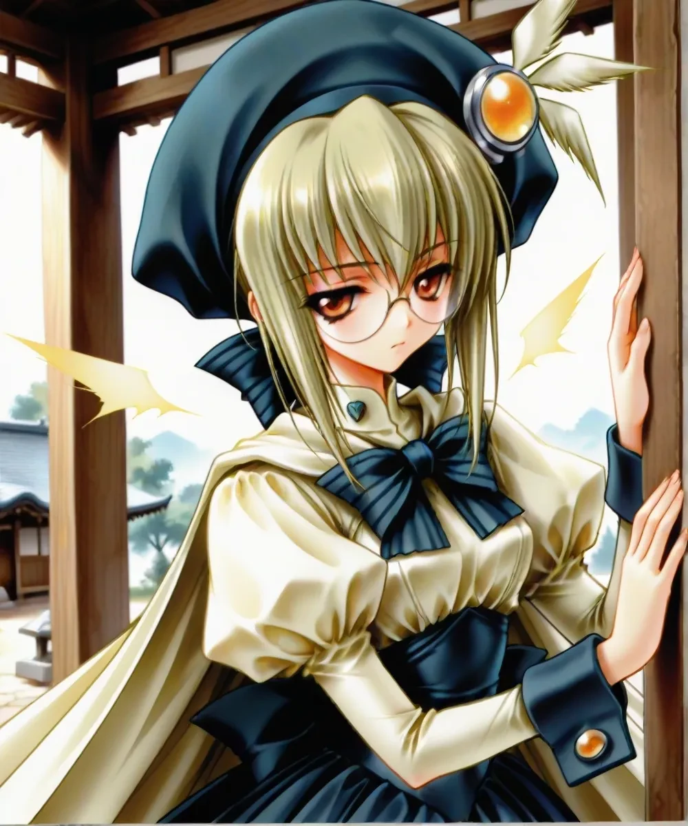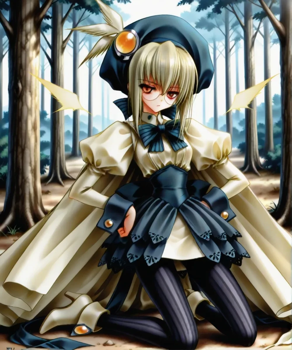 The skirt color is inconsistent each time I generate her. The number of orbs on her beret sometimes doubles. Since there's no official illustration of her facing backwards, the illustration from the back is inconsistent.