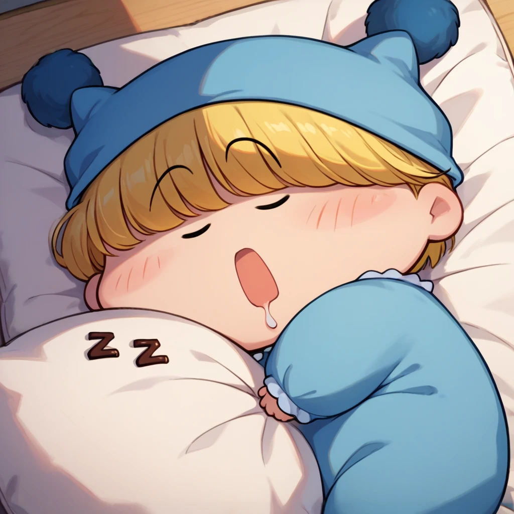 bluenightcap,bluepajamas,shoes,