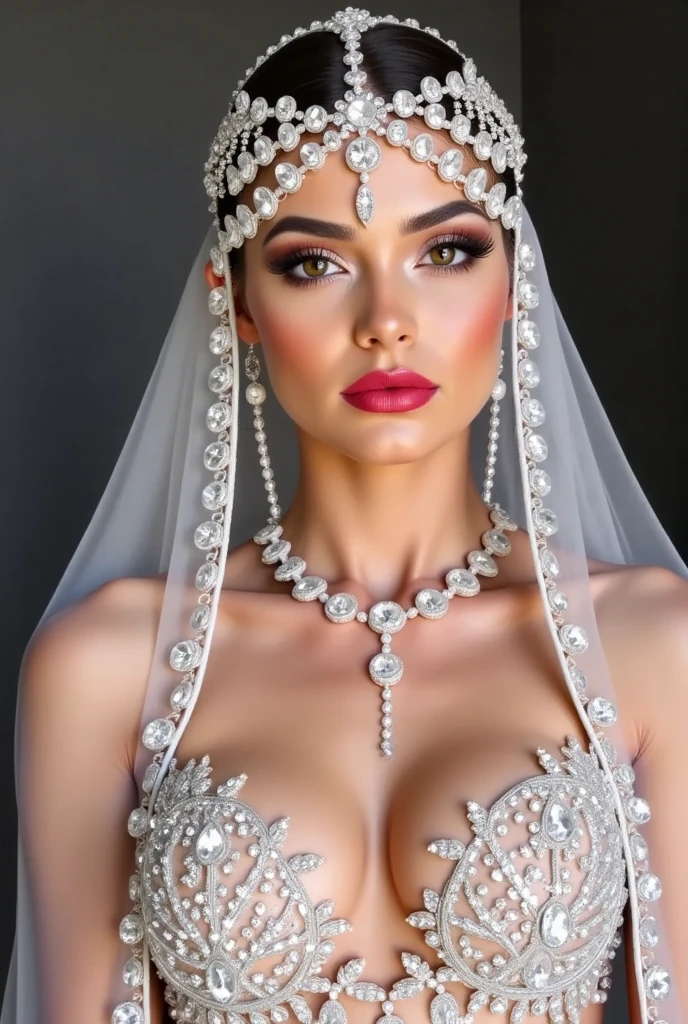 A cable, a chain, sparkling crystals and stones
