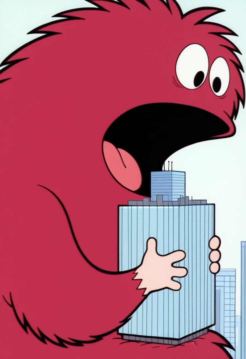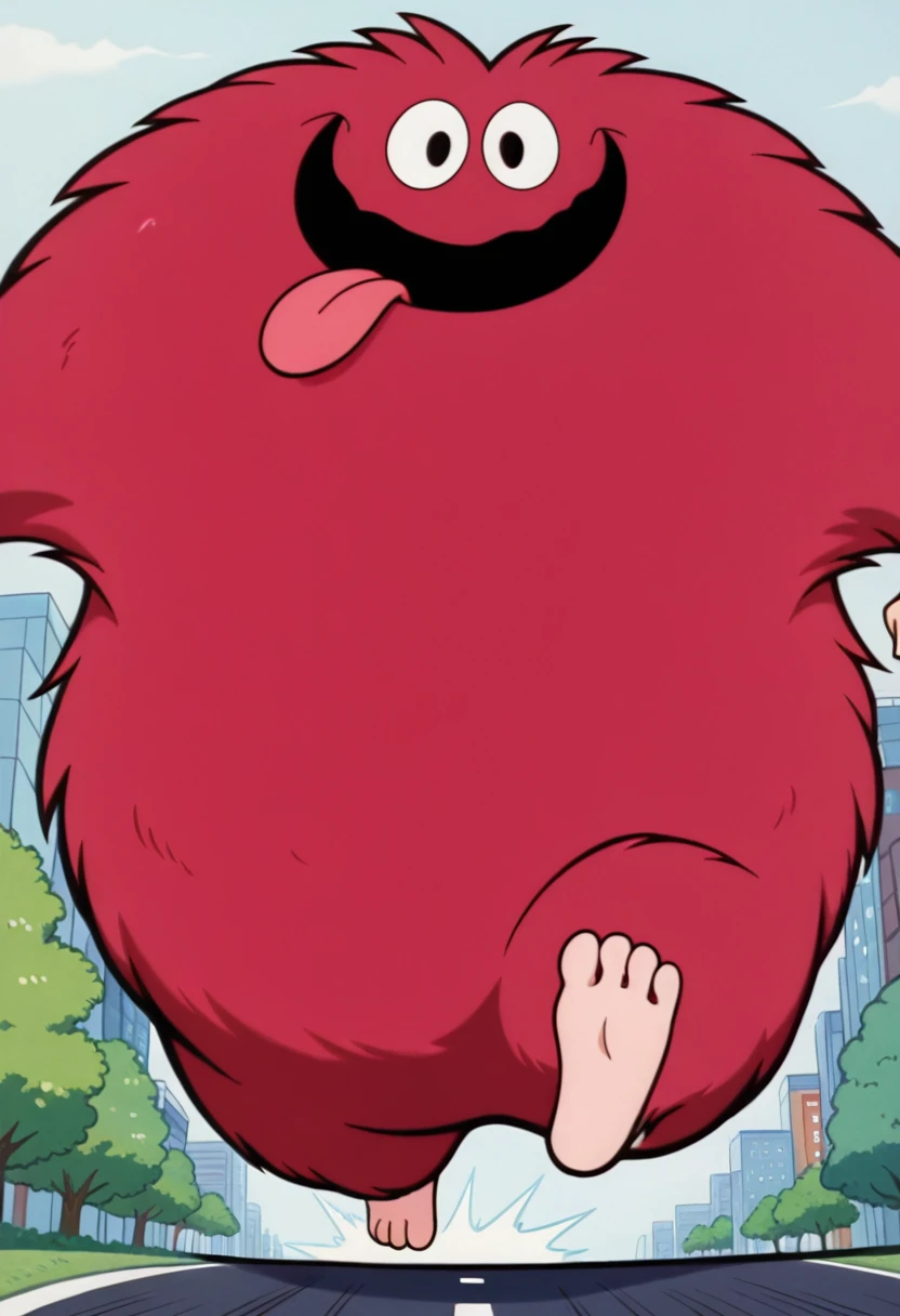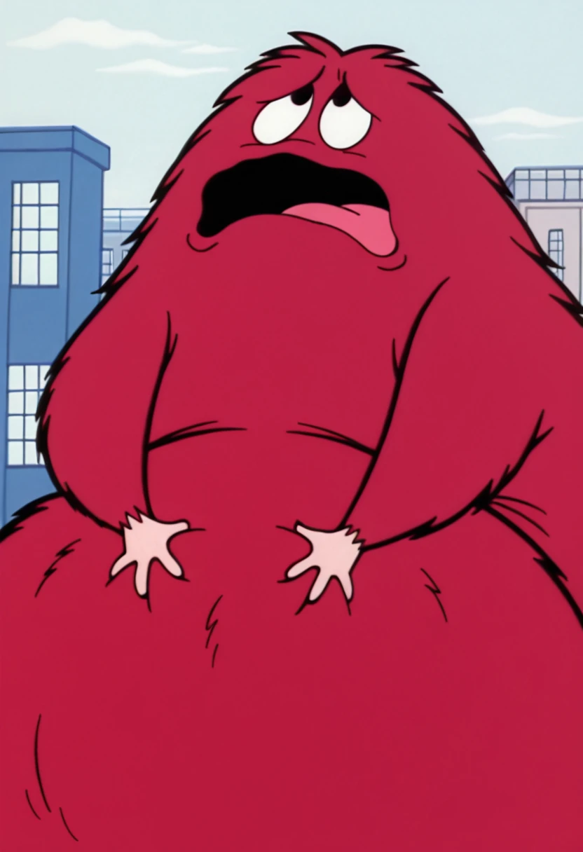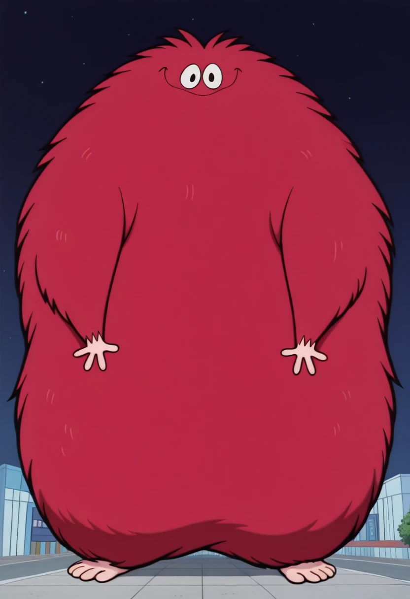 B33B0, red fur, fluffy, black eyes, thick body, giant, monster, tan hands tan feet