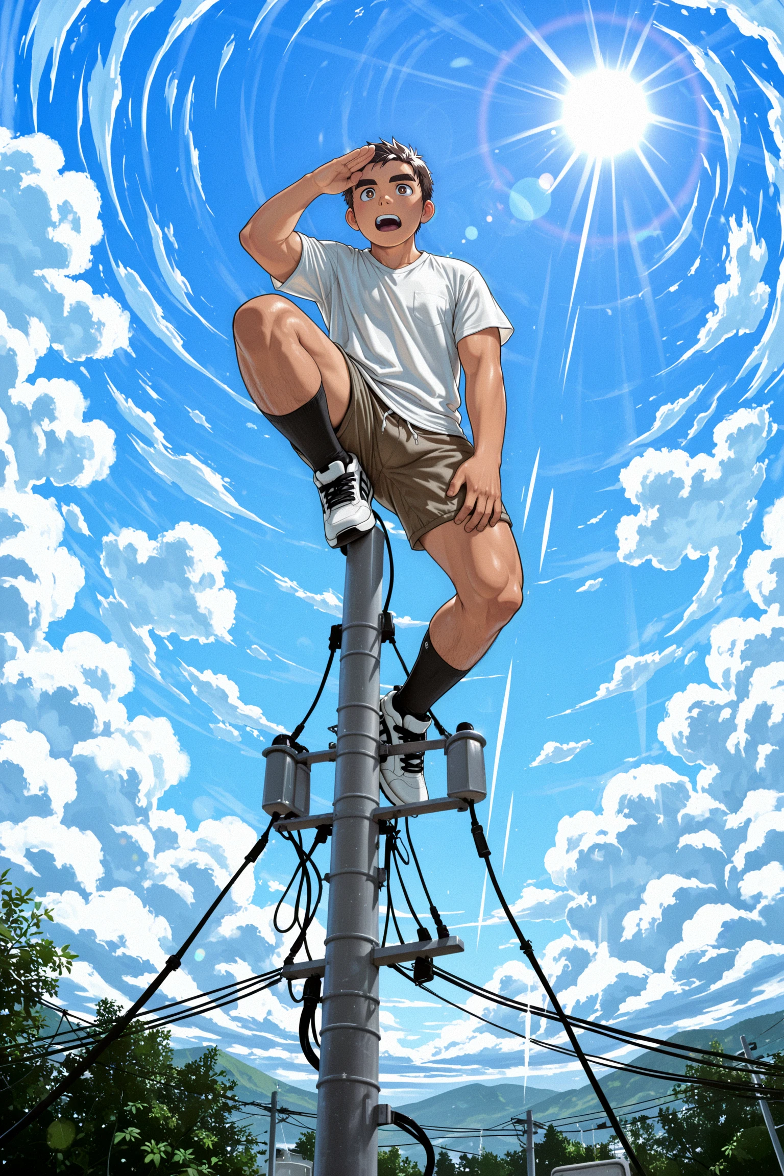 on top of poleUse tags such as utility pole, lamppost, onbashira etc. to influence the object the character is standing on.