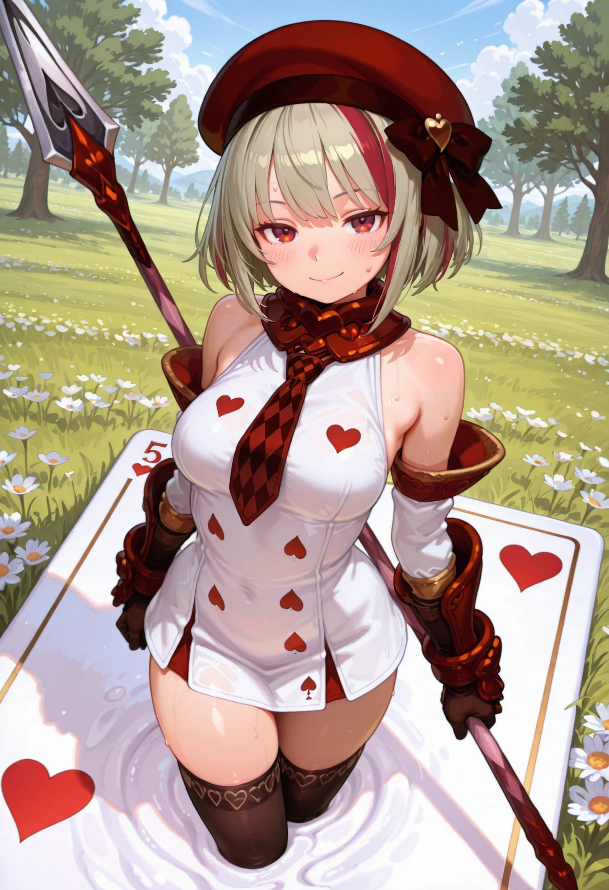 holding polearm, red spear♣️♠️♥️♦️ For Other Suits::