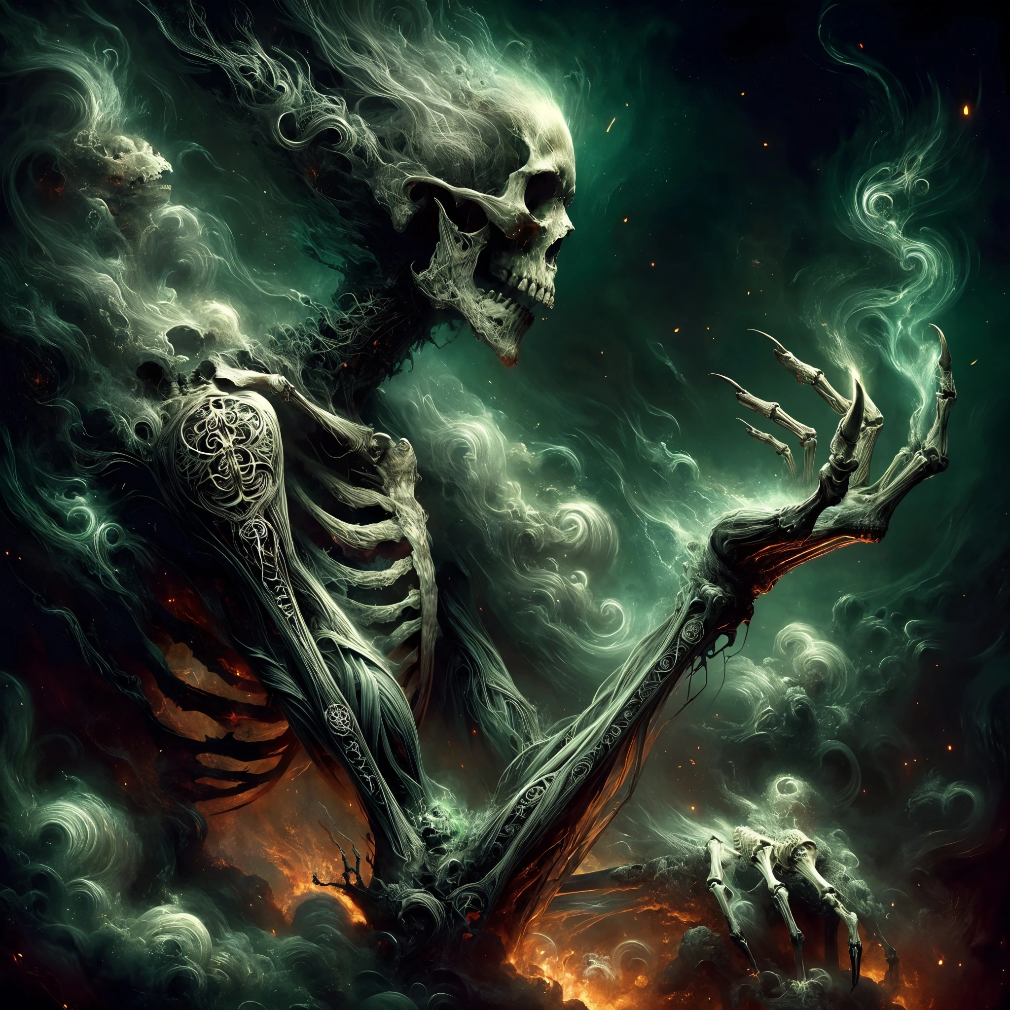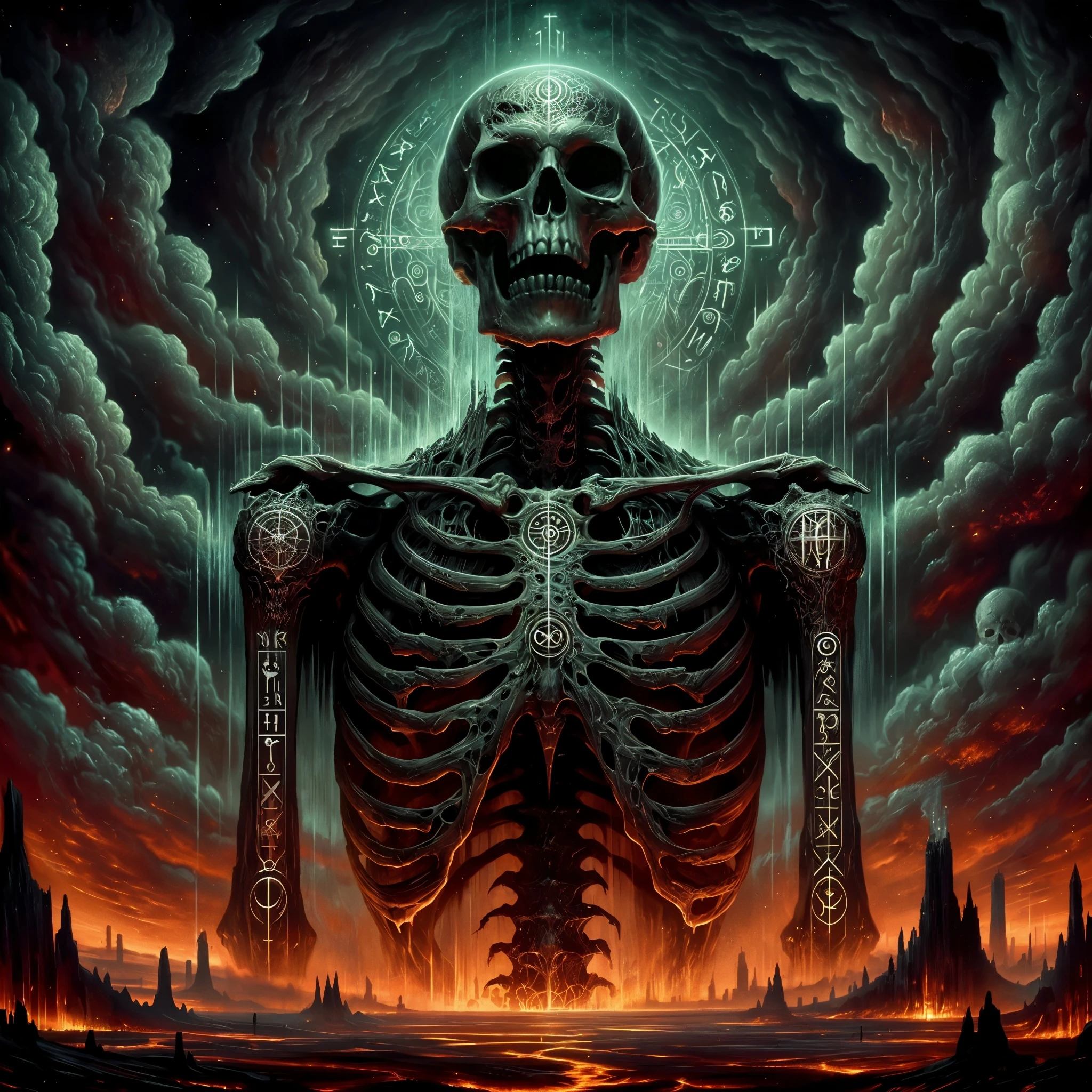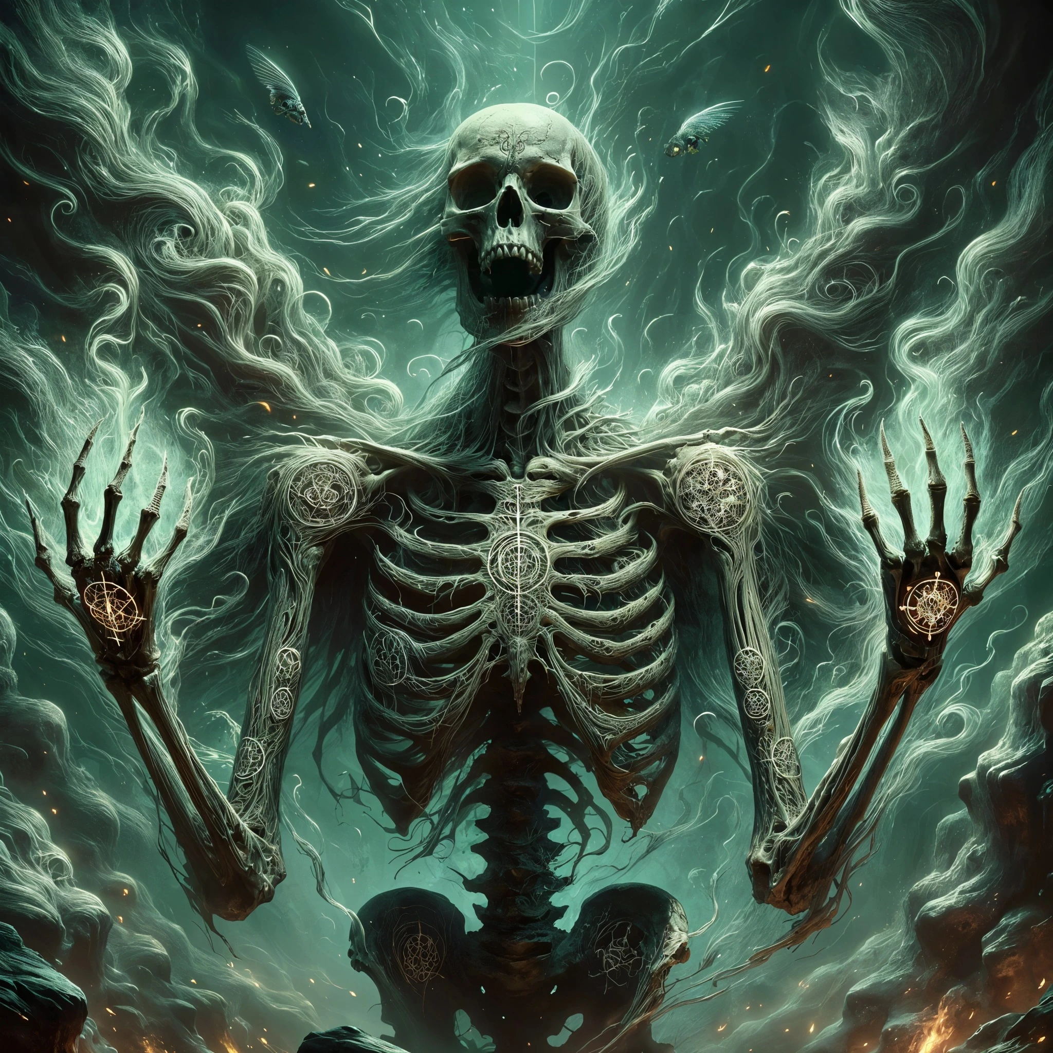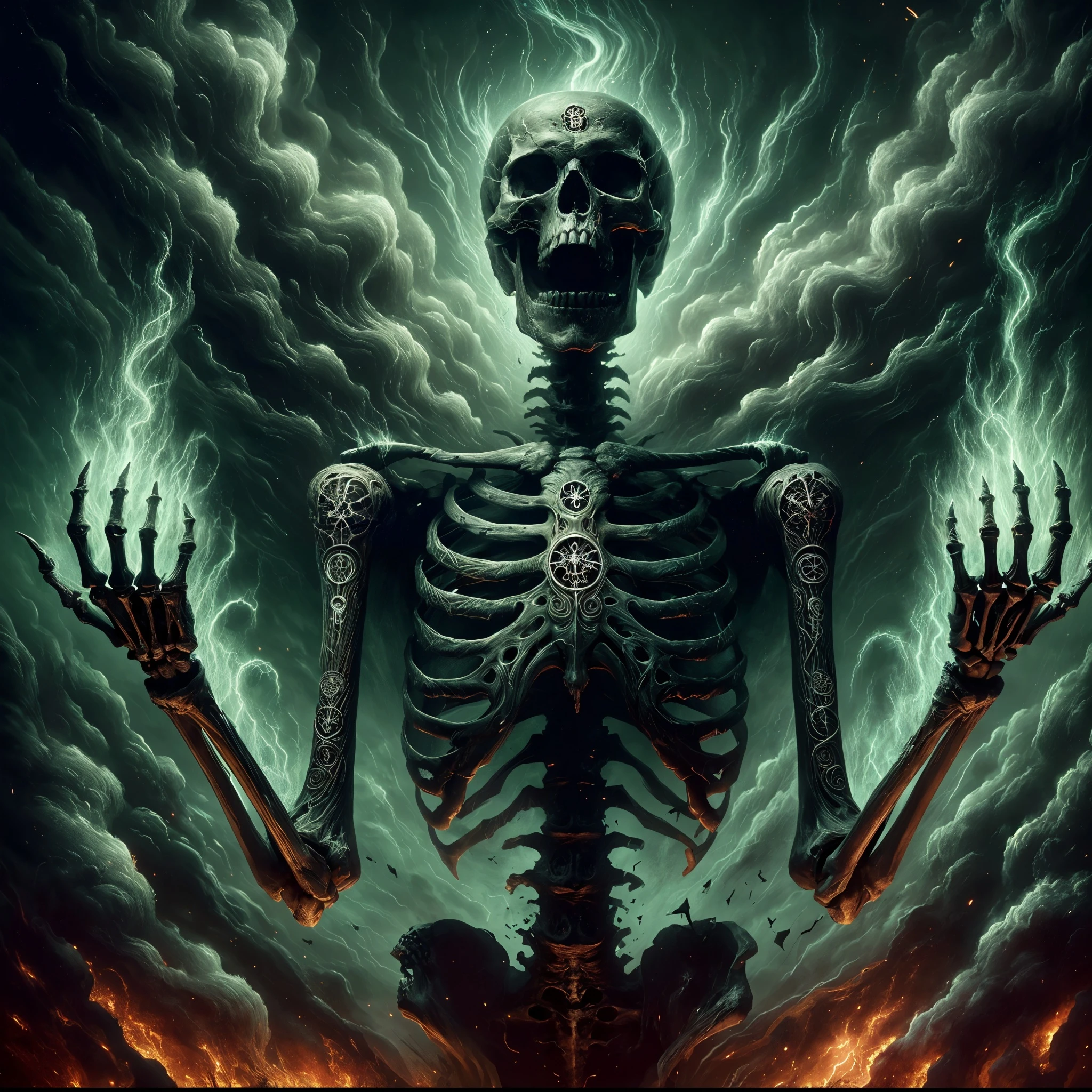 Intricate bone patterns, tattoos, or arcane symbols