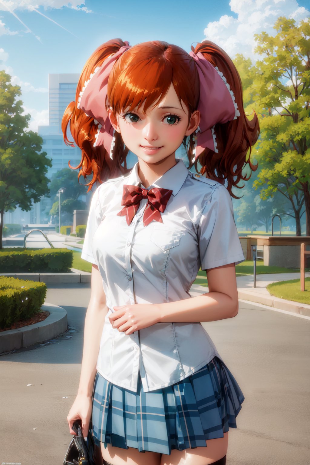 Sample Outfit: school uniform, collared shirt, bow, plaid skirt