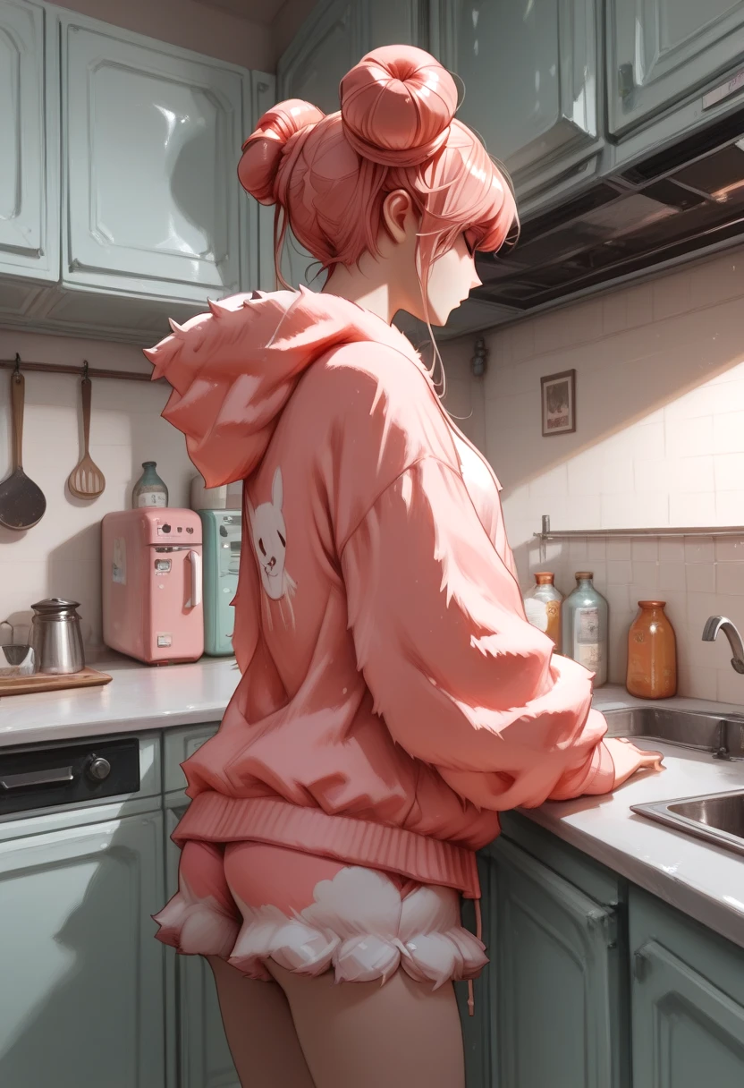 lunarose, double bun, fluffy hoodie, fluffy shorts,