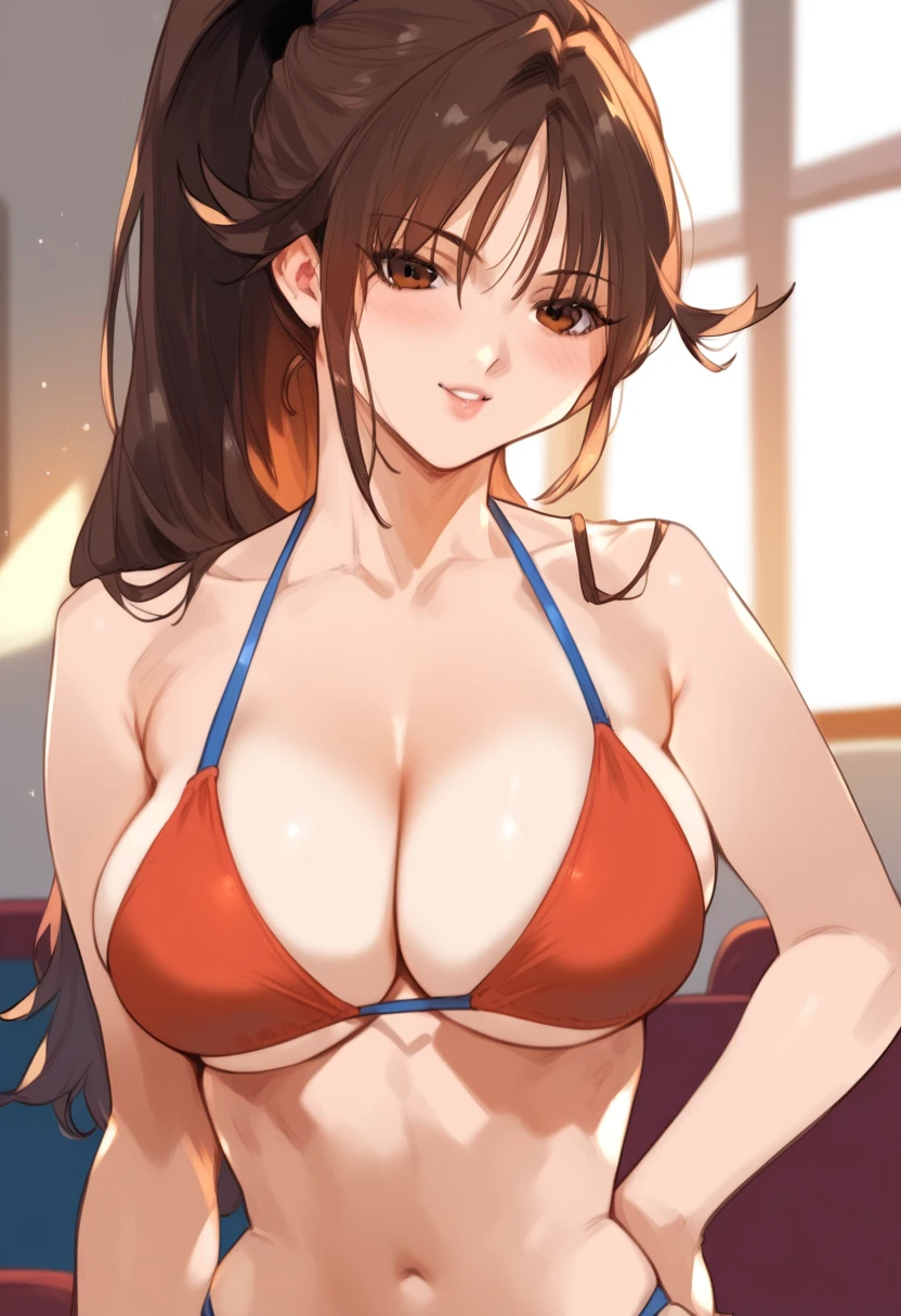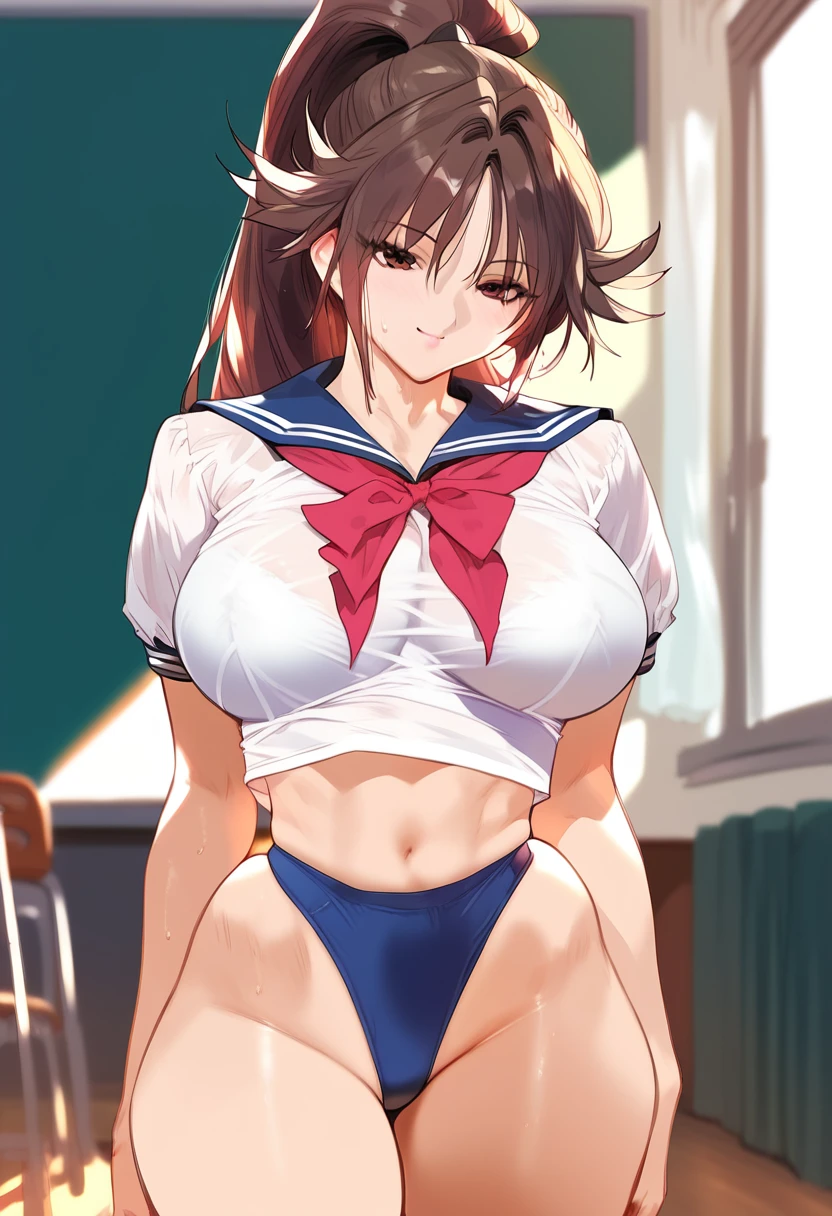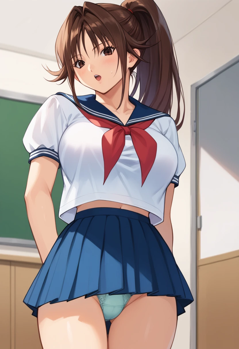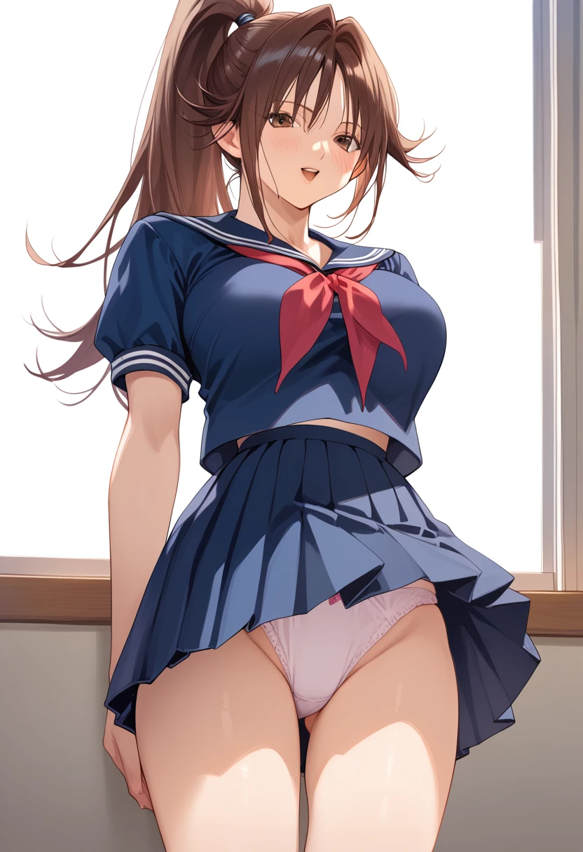 kitaooji_satsuki, long hair, ponytail, brown hair female, large breasts, serafuku, school uniform, skirt