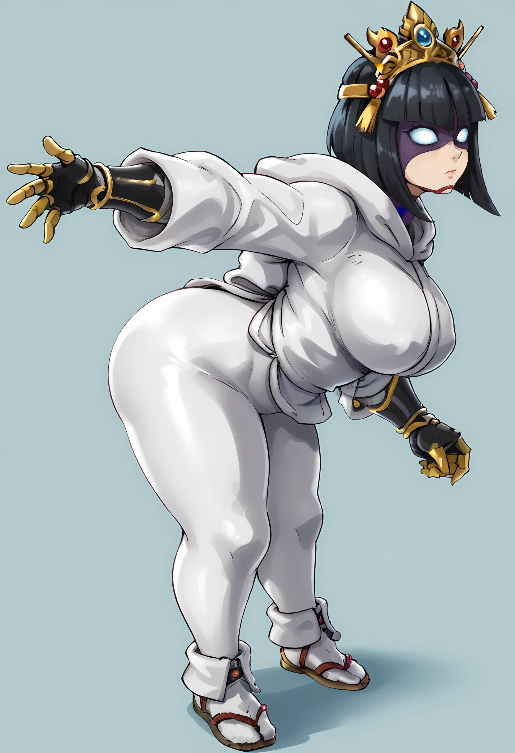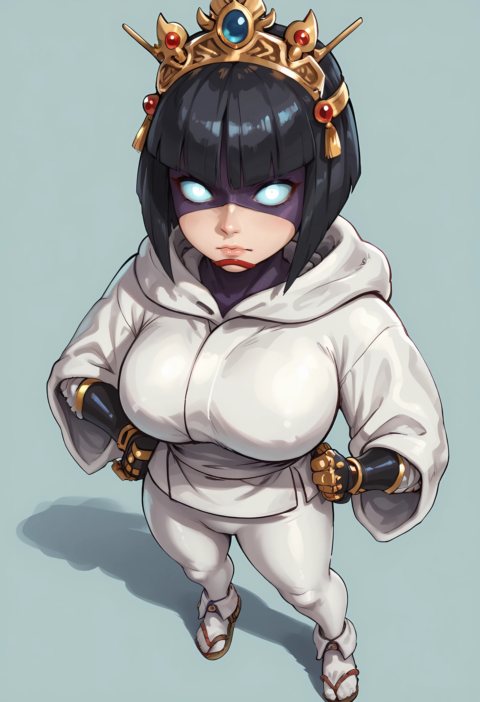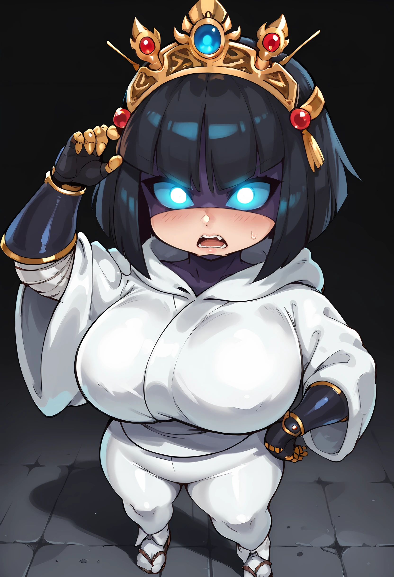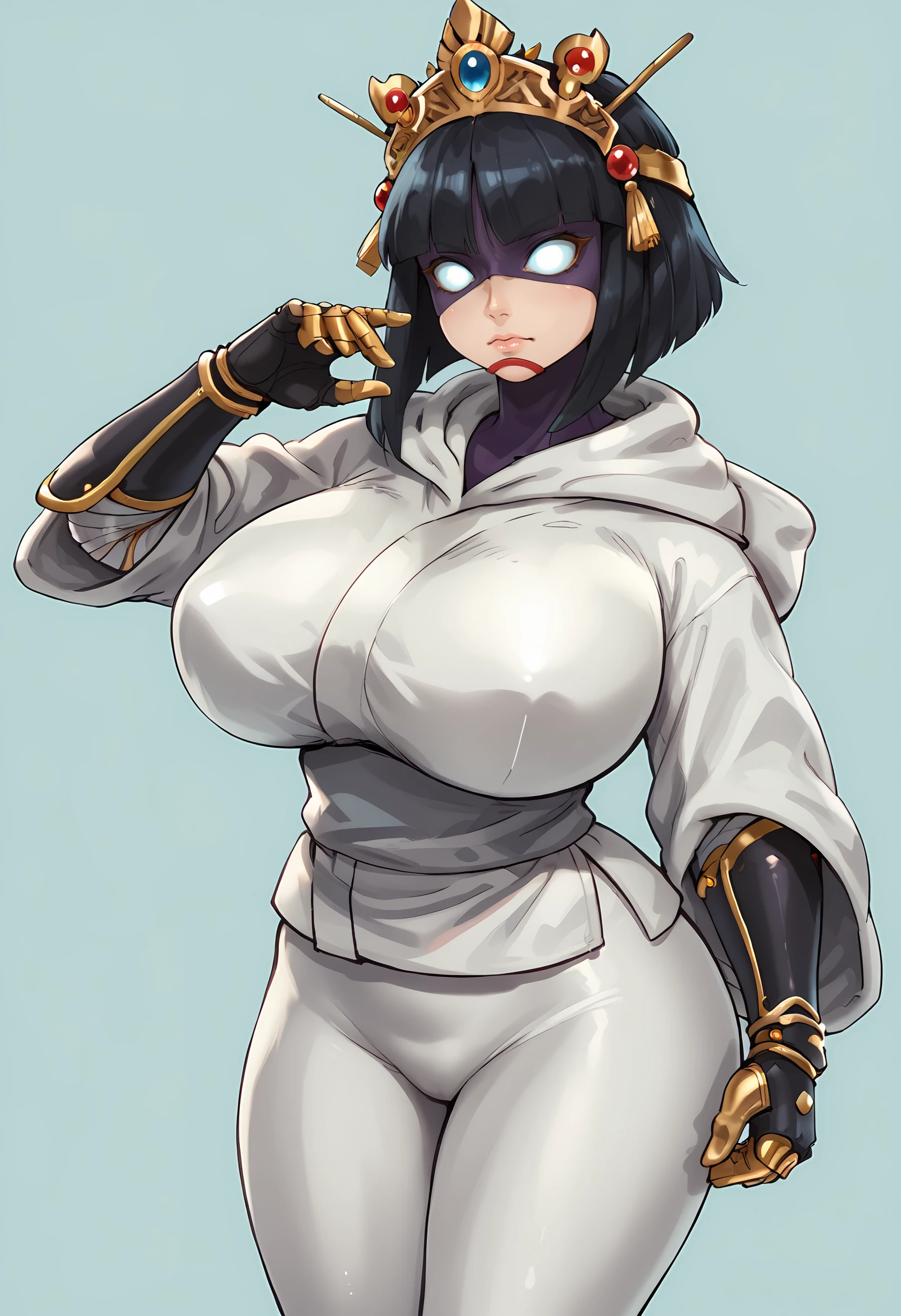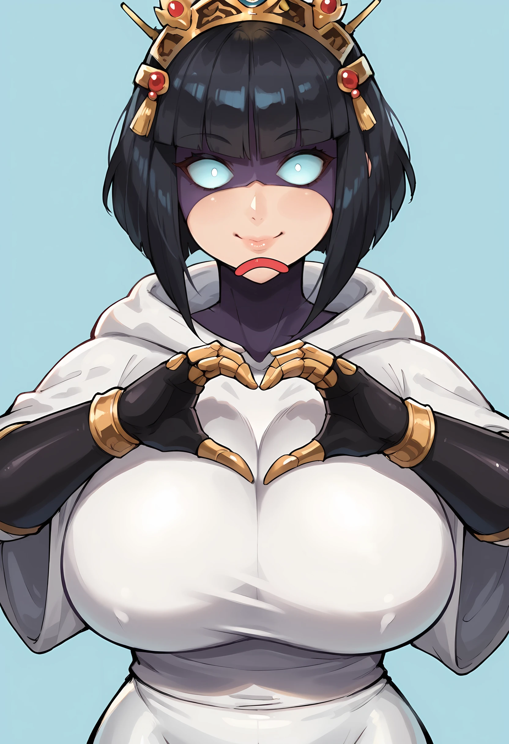 1girl, breasts, large breasts, huge breasts, bob cut, short hair, black hair, no pupils