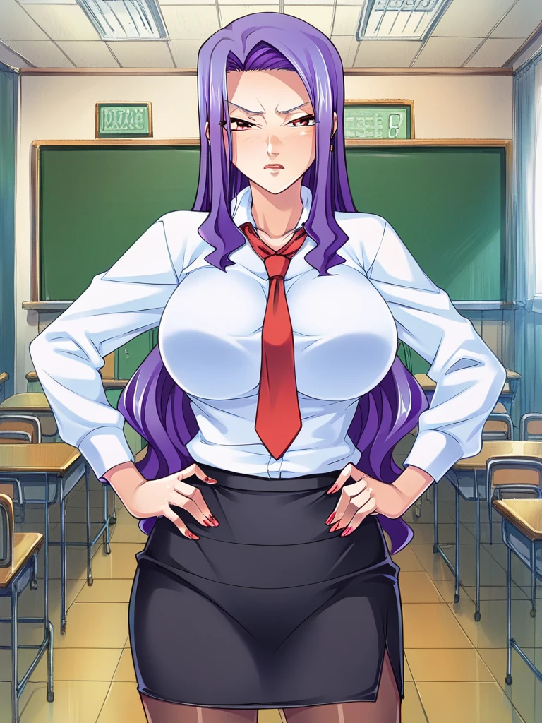 fuyuno reiko, purple hair, long hair, red eyes, mature female,