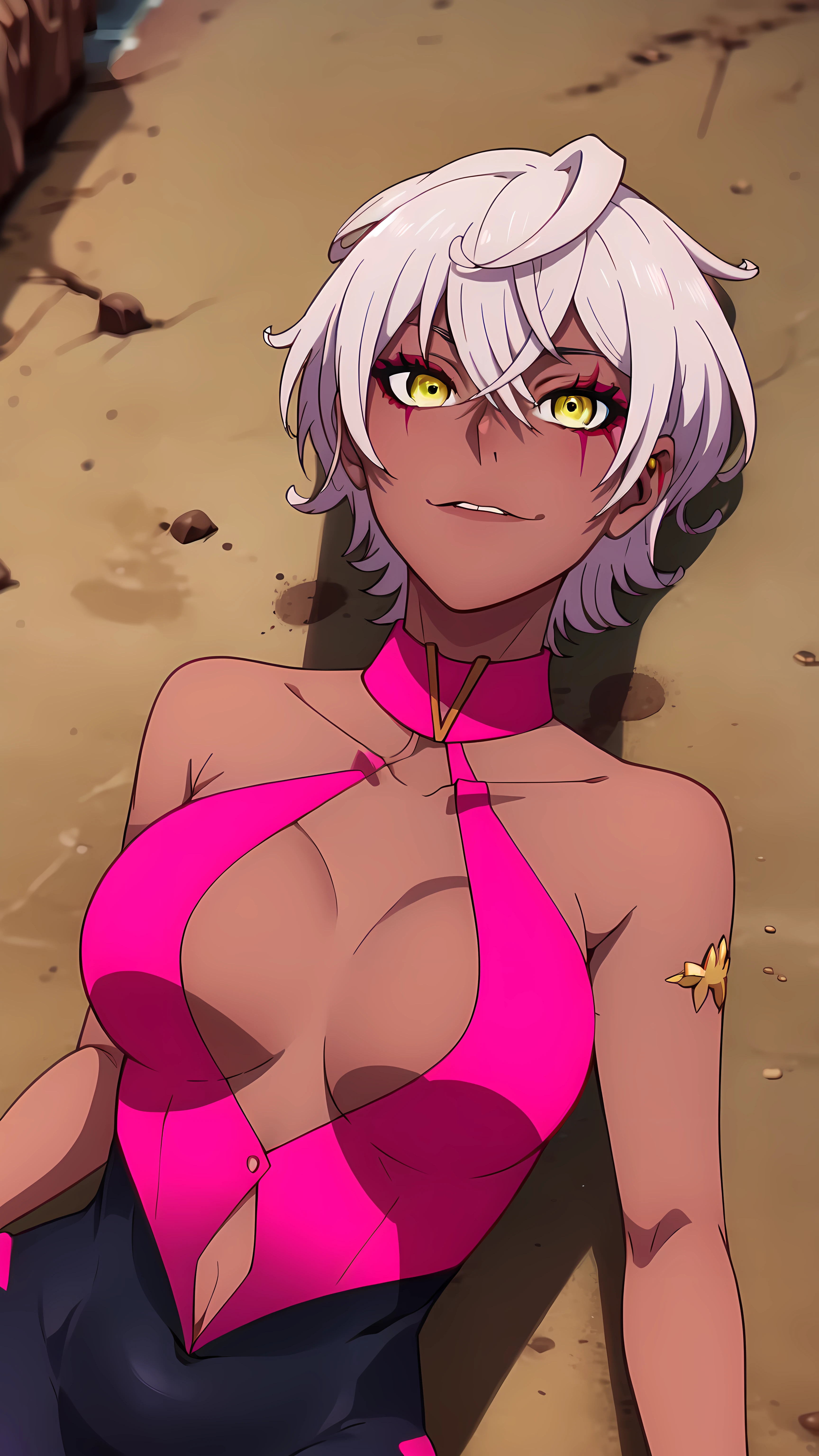 yellow eyes_short hair_ absolute cleavage_dark skin