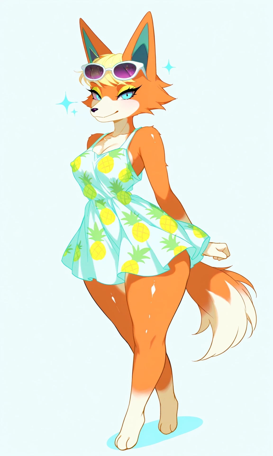 orange fur color, two-tone fur, blue eyes, blonde hair, short hair, sunglasses