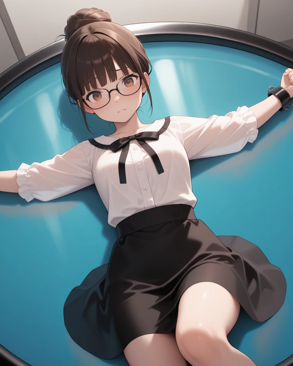 laying down, on back, restrained
