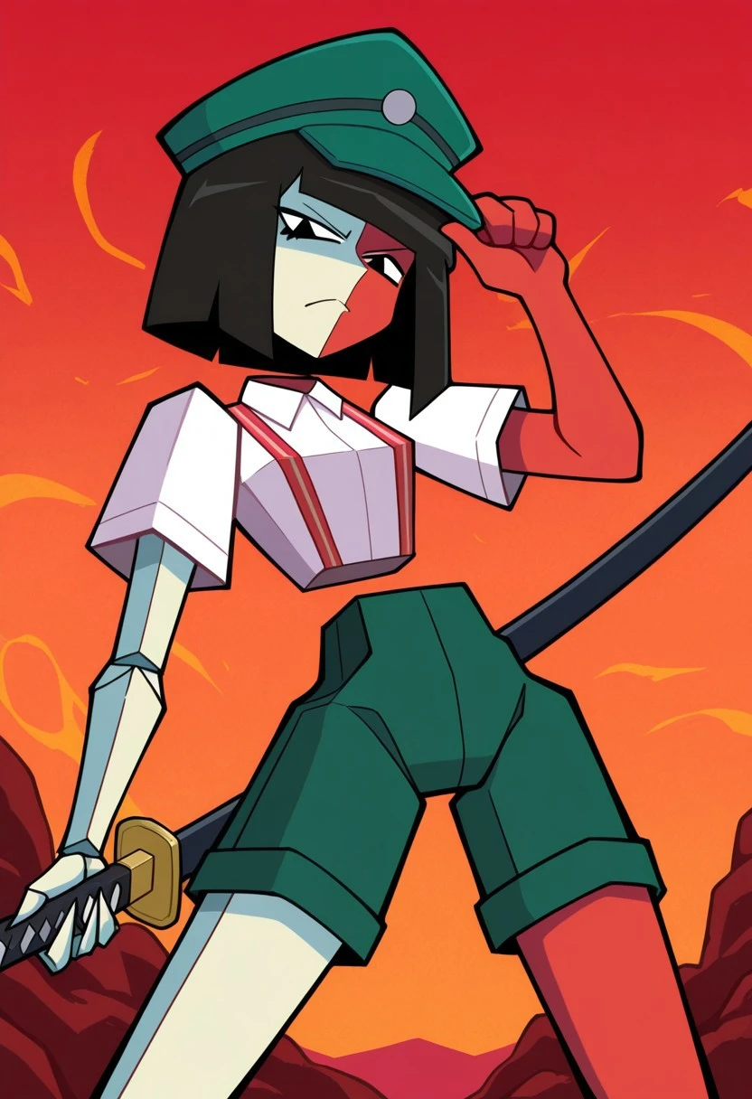 black hair, short hair, blunt bangs