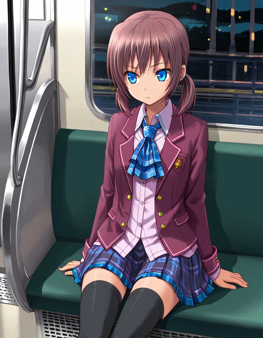 skirt, thighhighs, long sleeves, school uniform, jacket, pleated skirt, black thighhighs, miniskirt, zettai ryouiki, plaid, ascot, plaid skirt, blazer