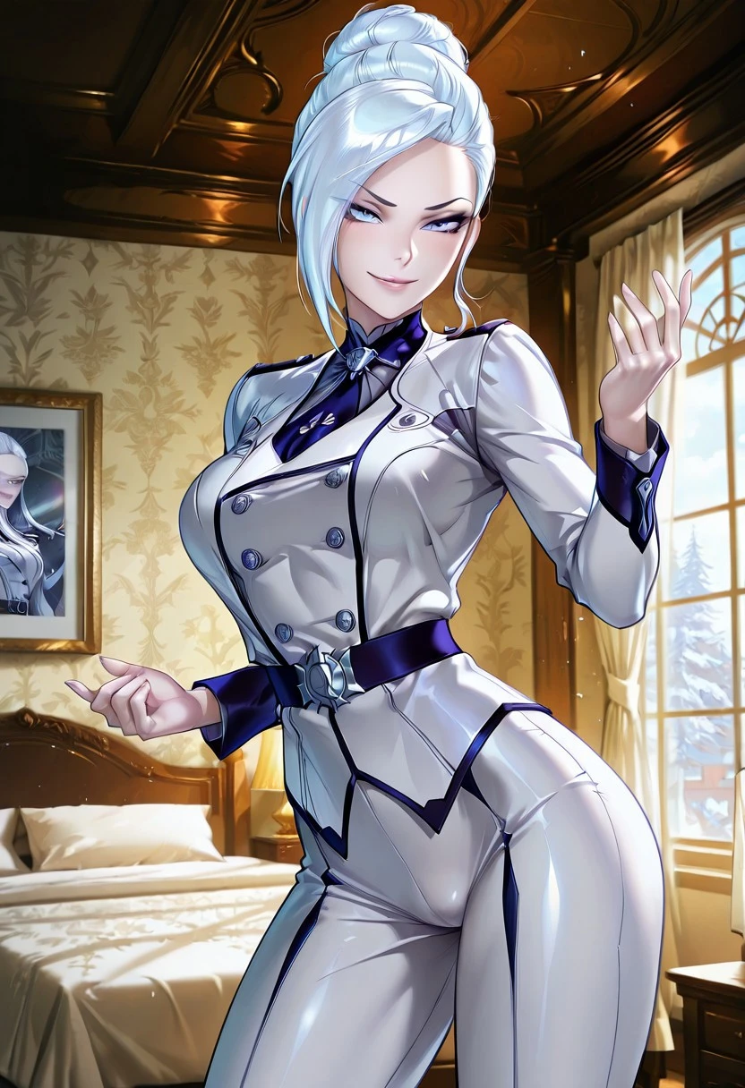 1girl, white hair, blue eyes, pale skin, medium breasts,