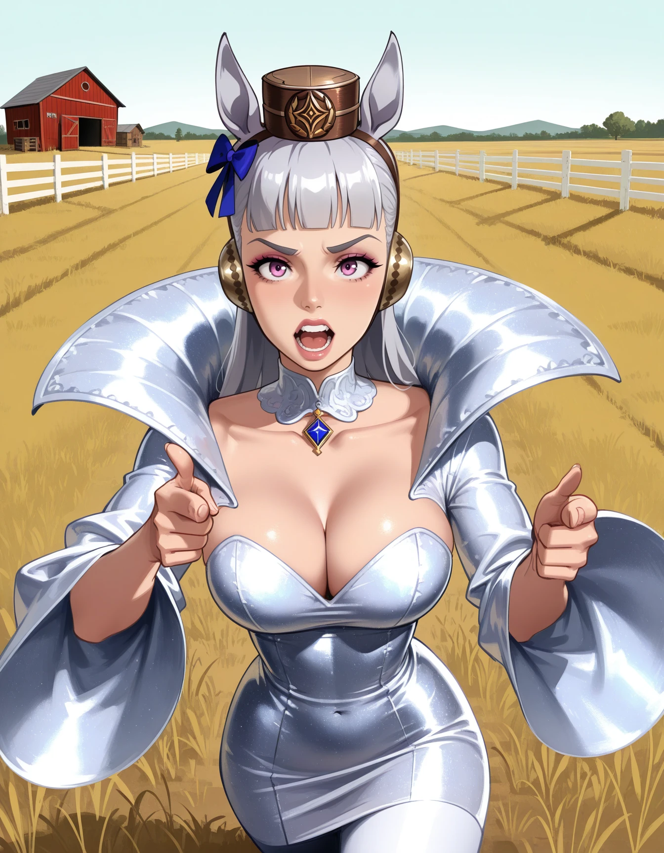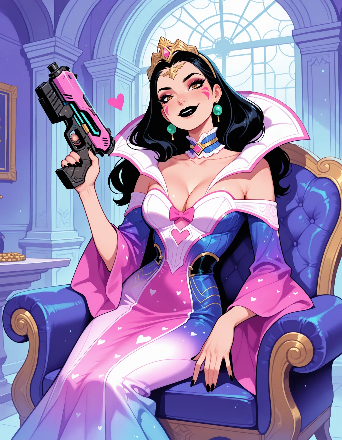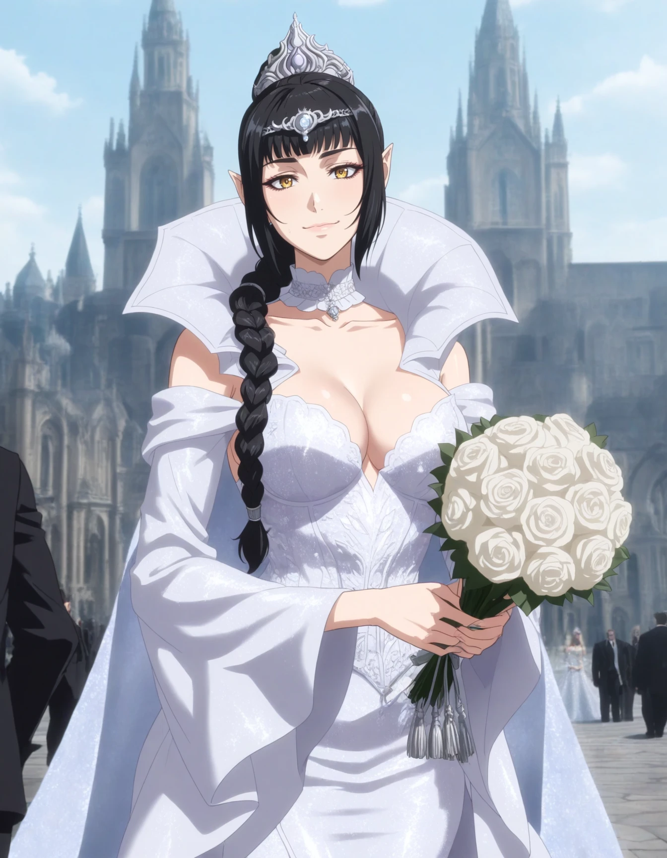 Best with: black clothing, gradient clothing, multicolored dress, snowflake print, satin clothing, cleavage, detached collar, (oversized high collar, elizabethan collar), tiny tassels, flared skirt, floor length dress, formal, tiara, wide sleeves, collarbone