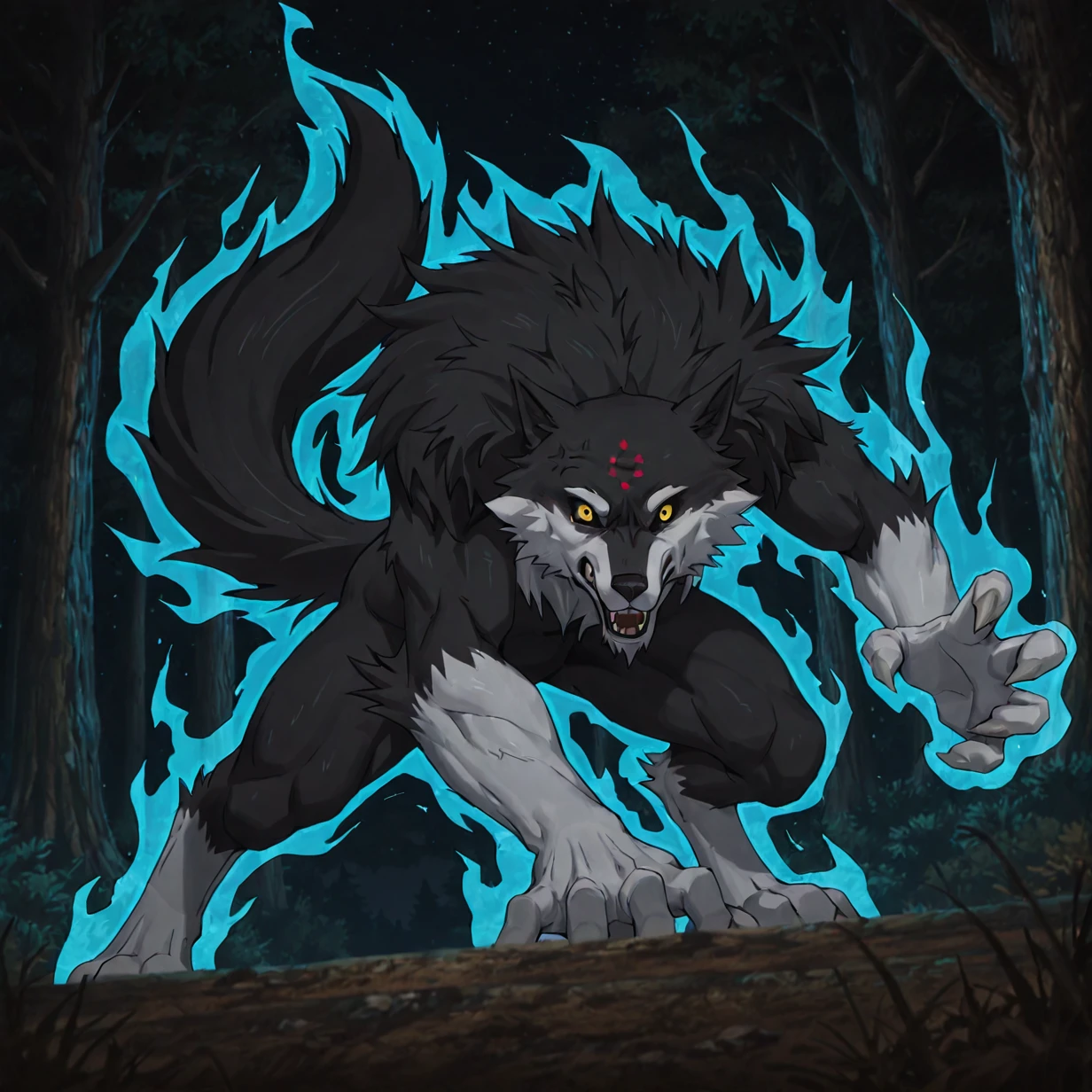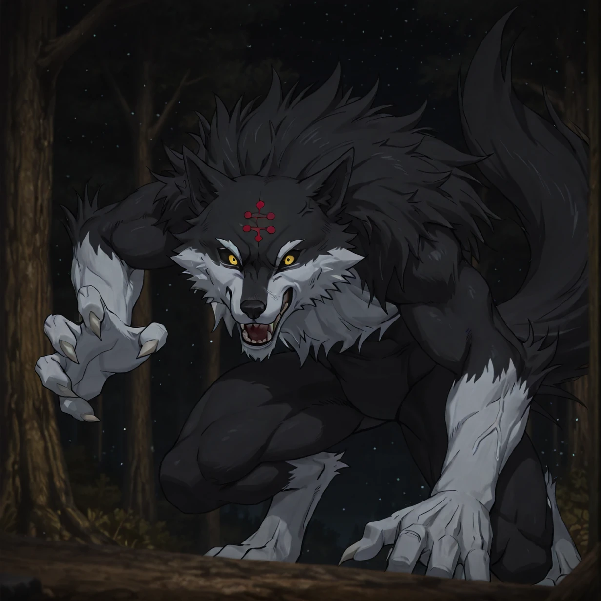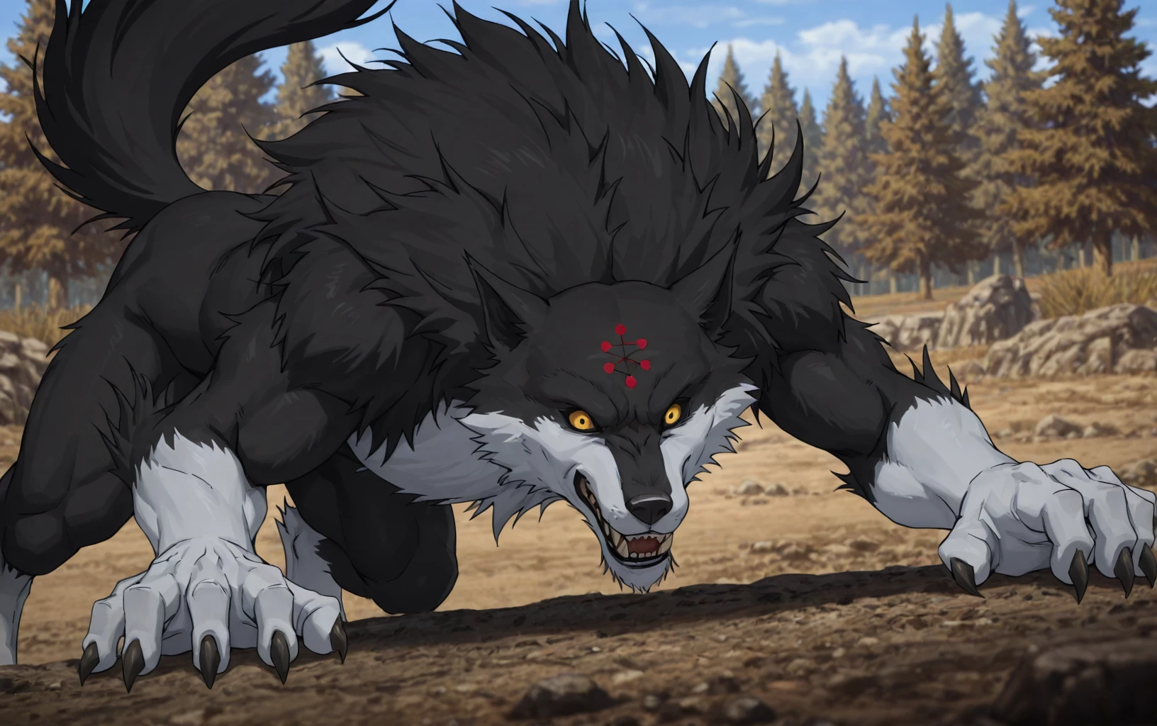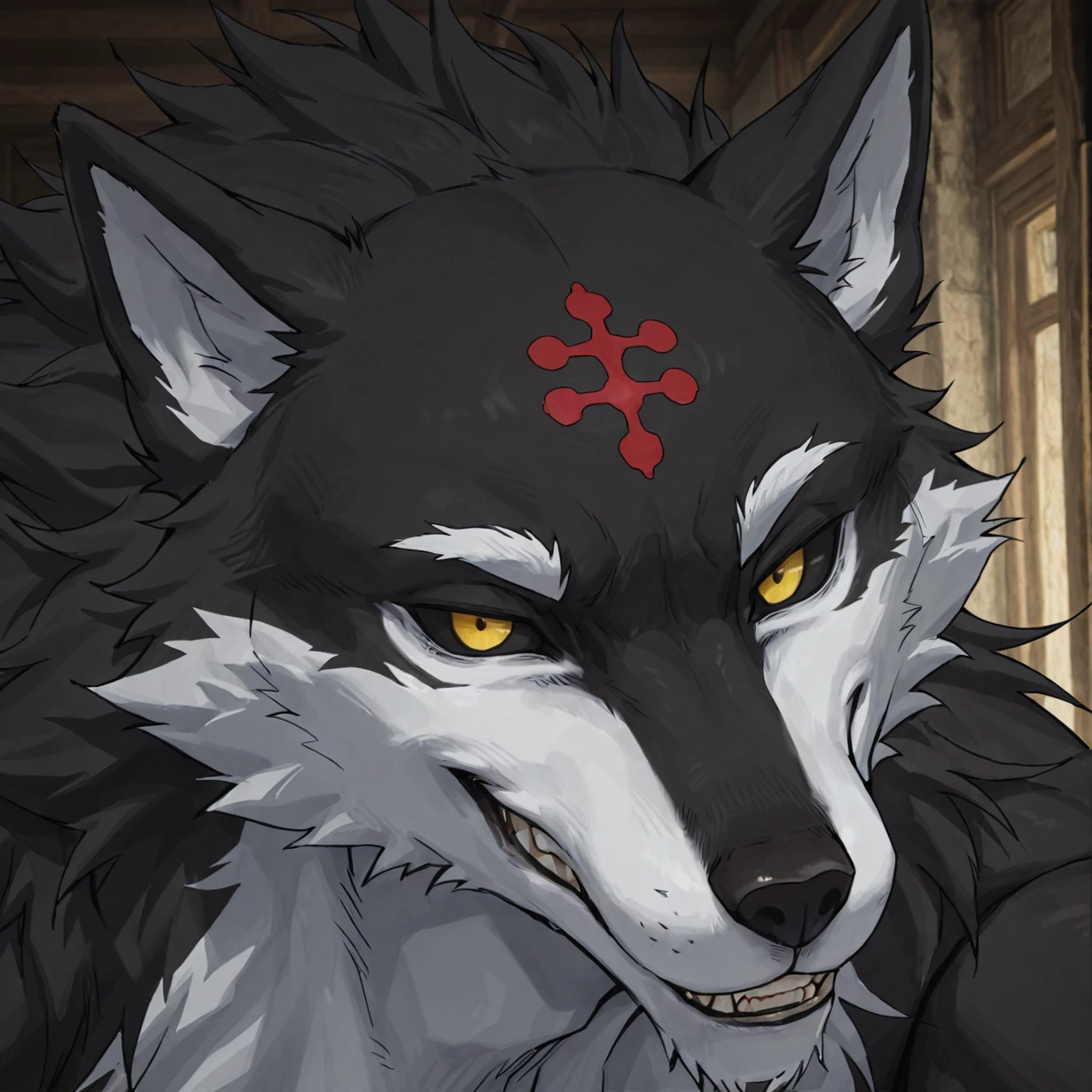 JJKDDT, Wolf, Red Marking on Forehead, White Eyebrows, Yellow Eyes, Black Sclera