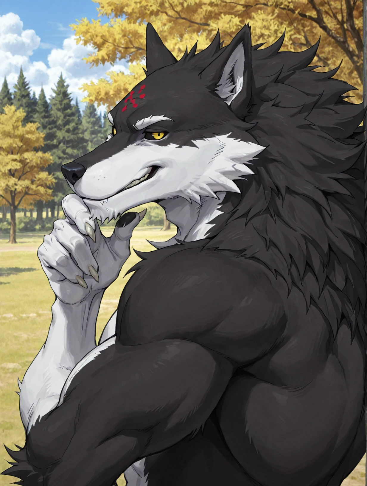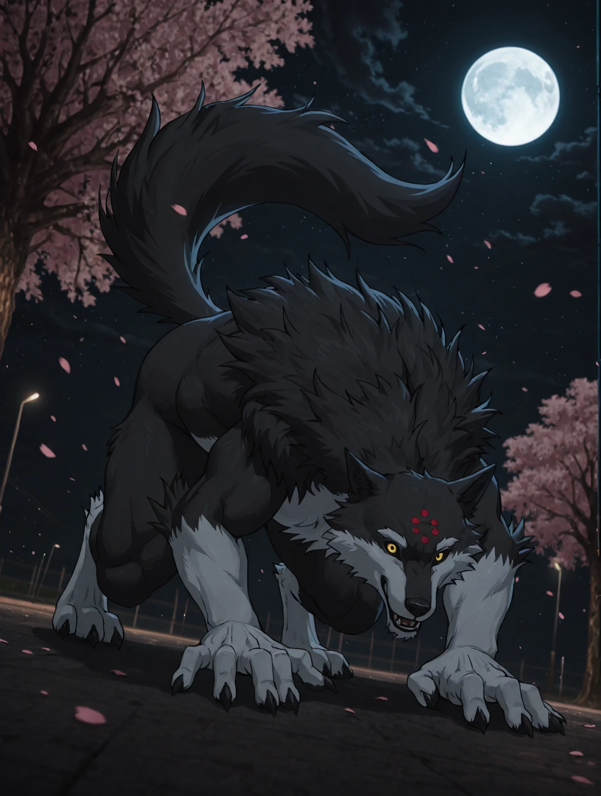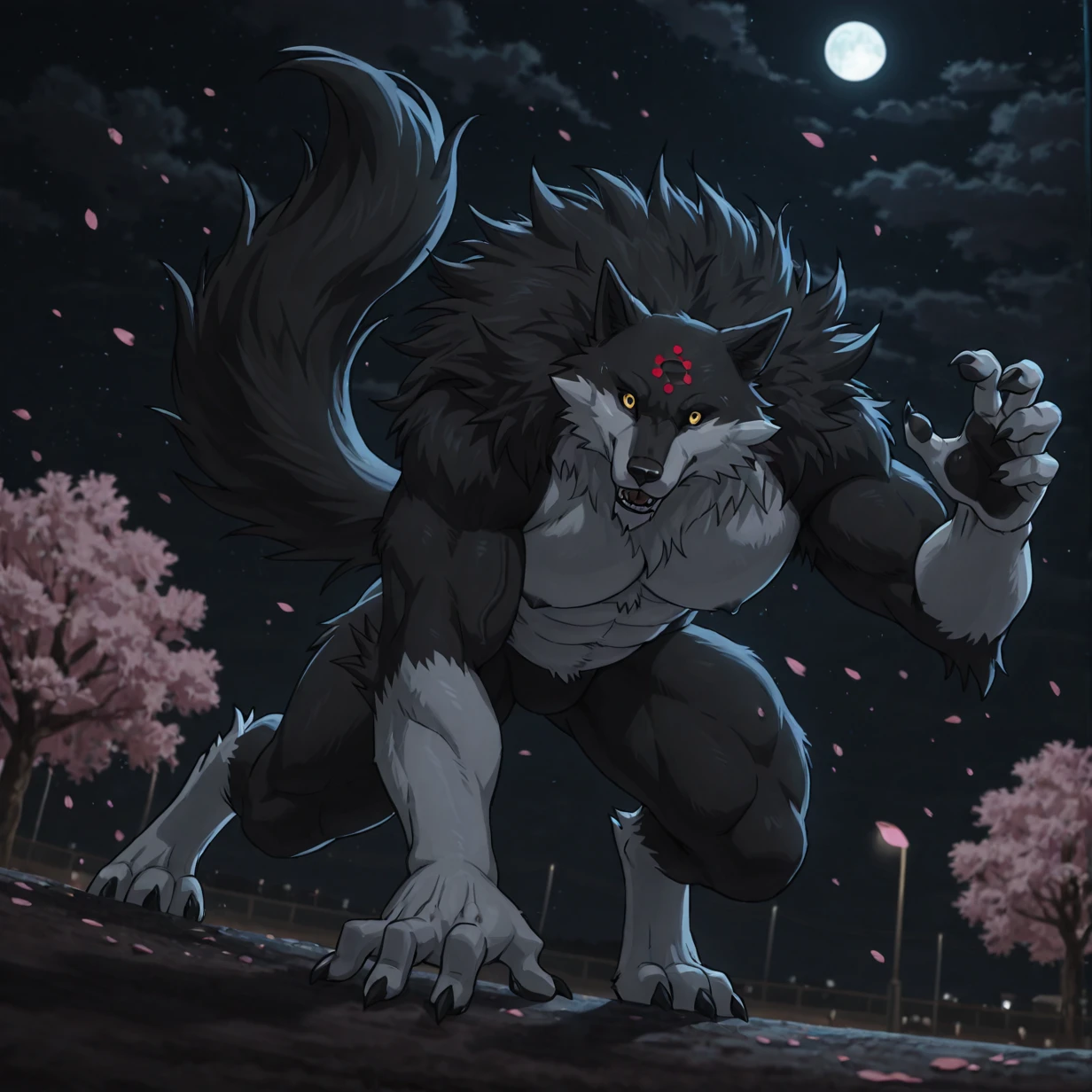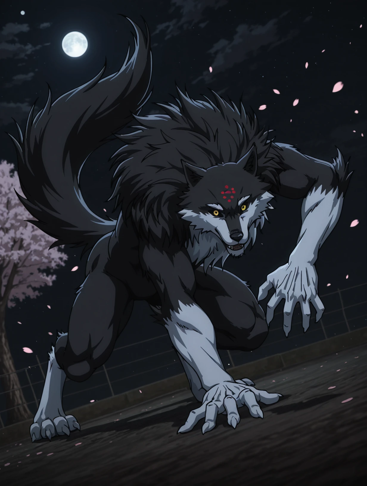 JJKDDT, Wolf, Red Marking on Forehead, White Eyebrows, Yellow Eyes, Black Sclera