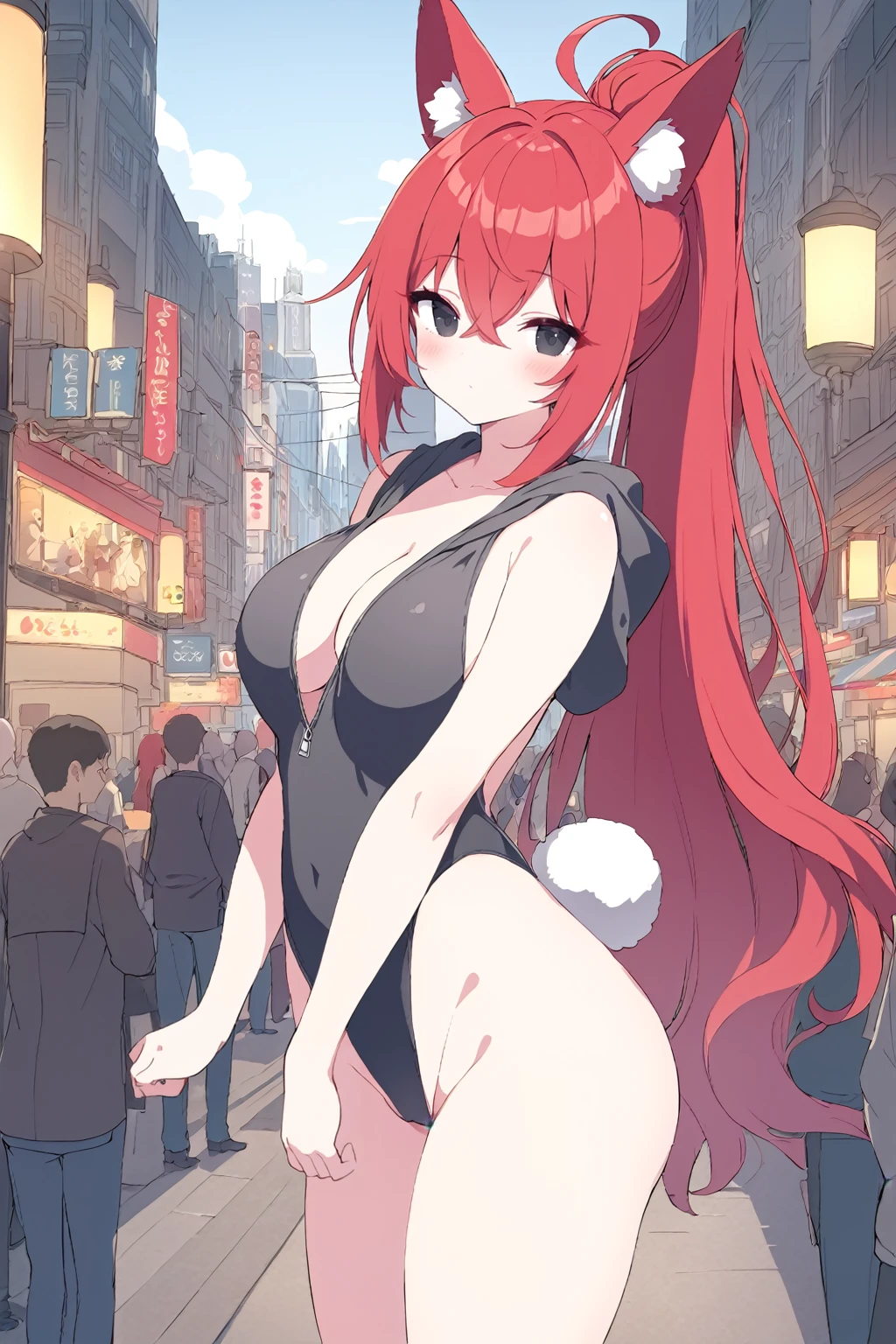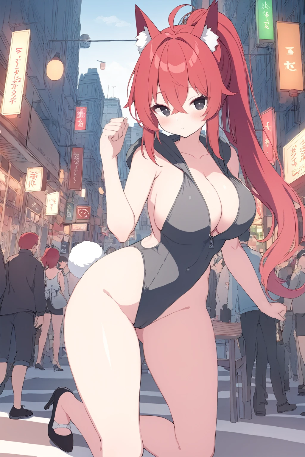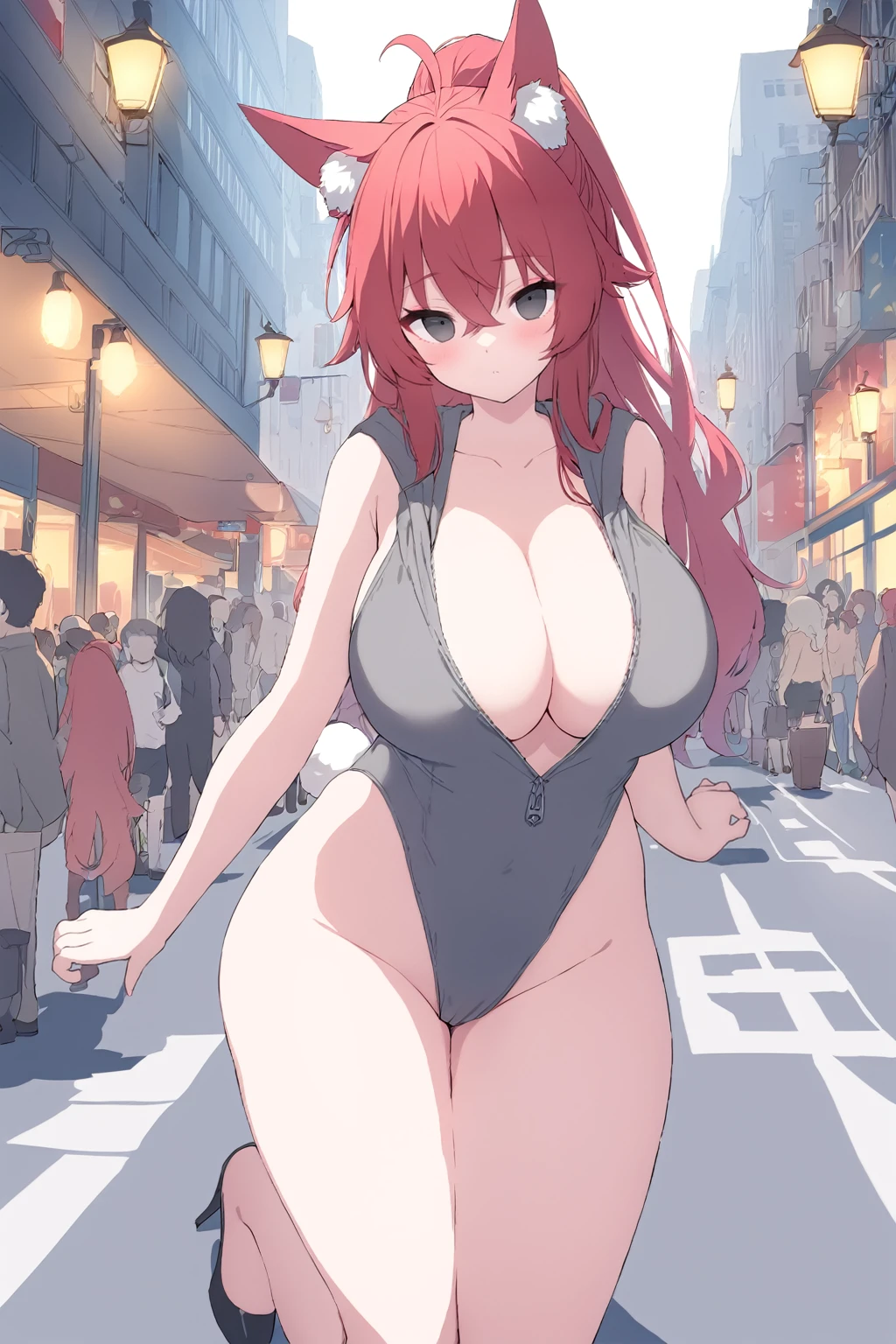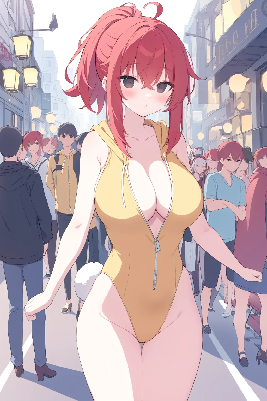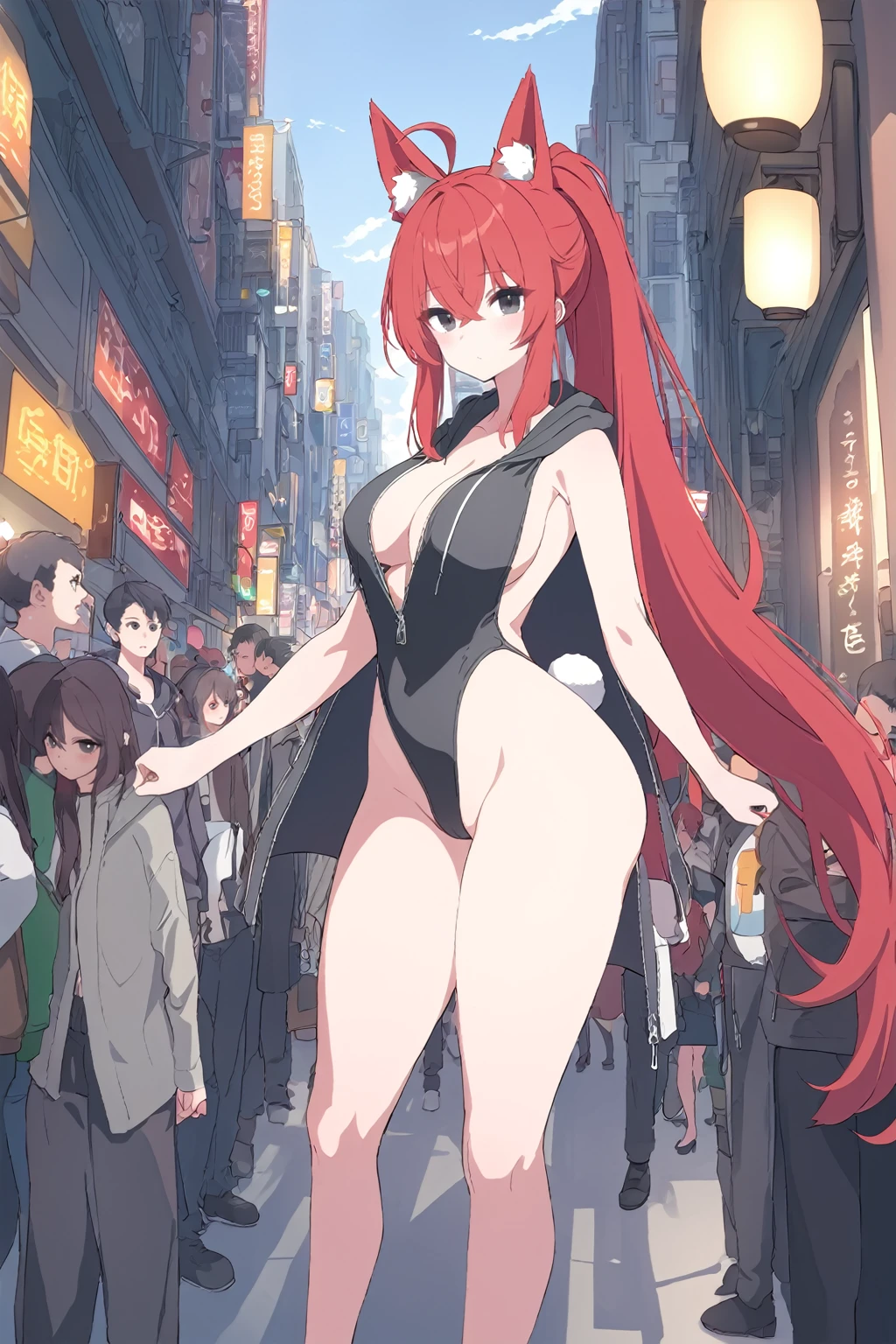 触发词(Trigger word):1girl,one-piece swimsuit,swimsuit,breasts,zipper,unzipped,rabbit tail,