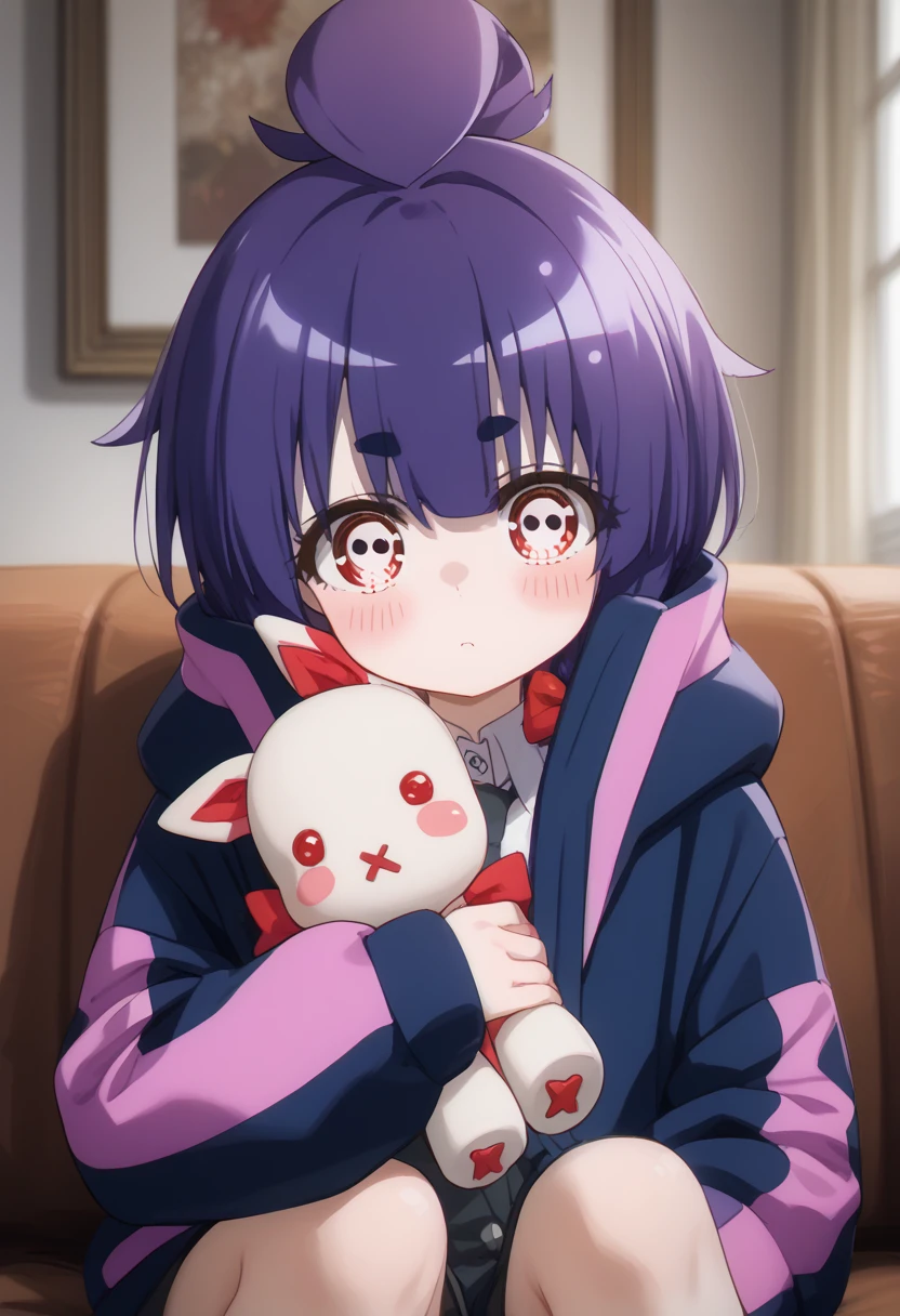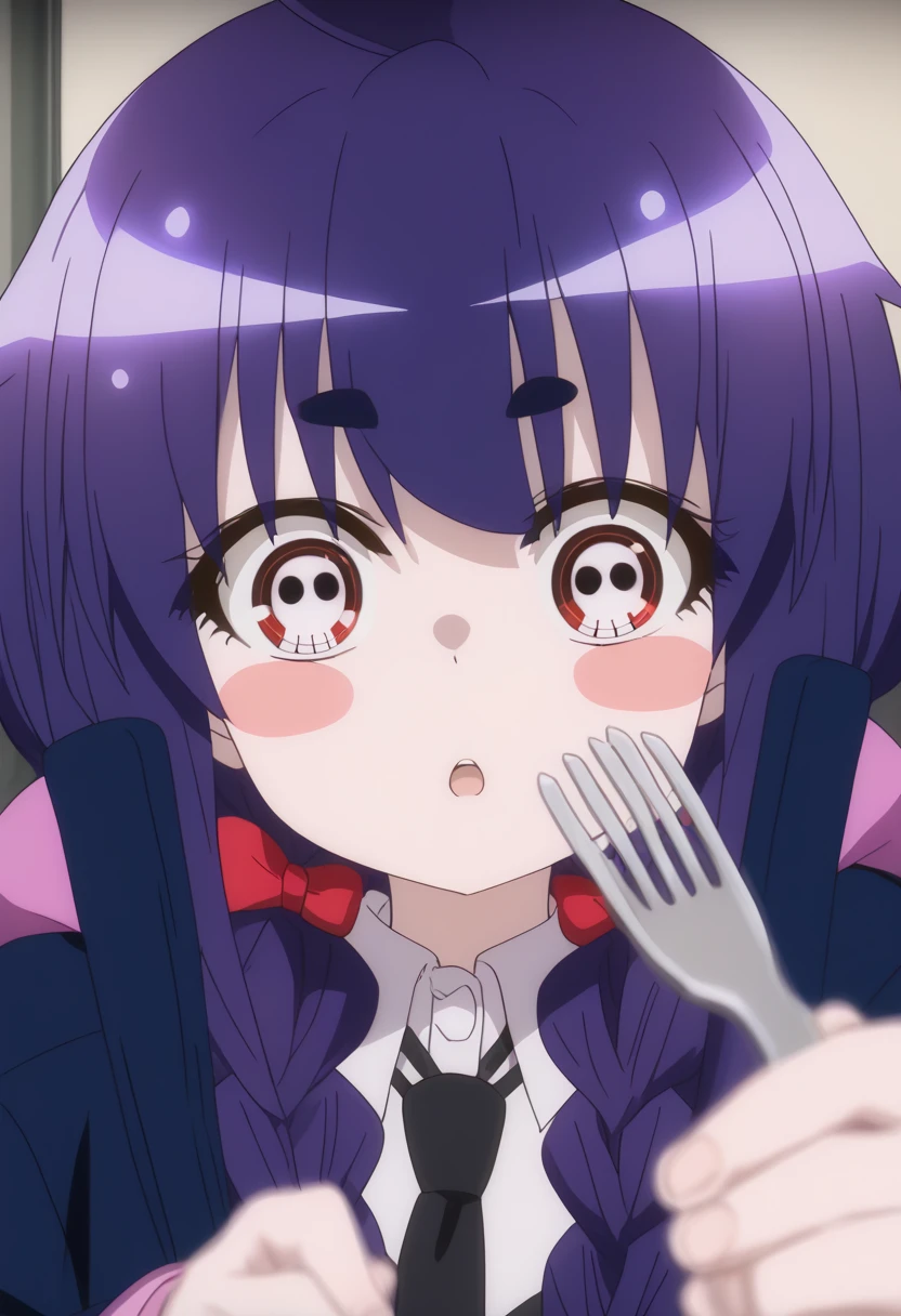 Trigger words: yayoi, skull pattern in eyes, thick eyebrows, blushes