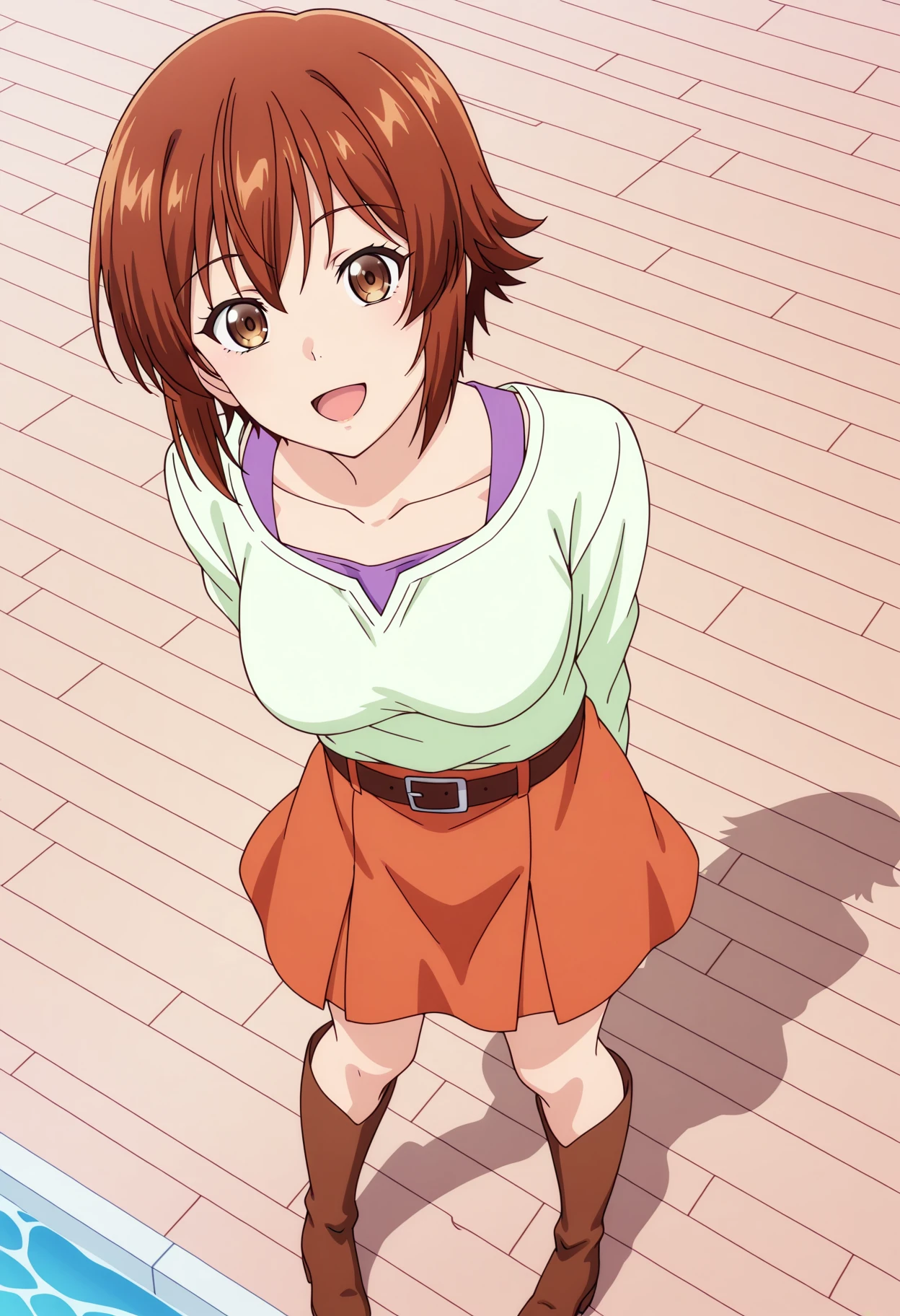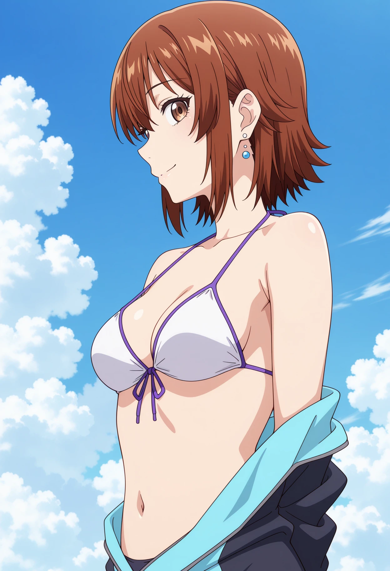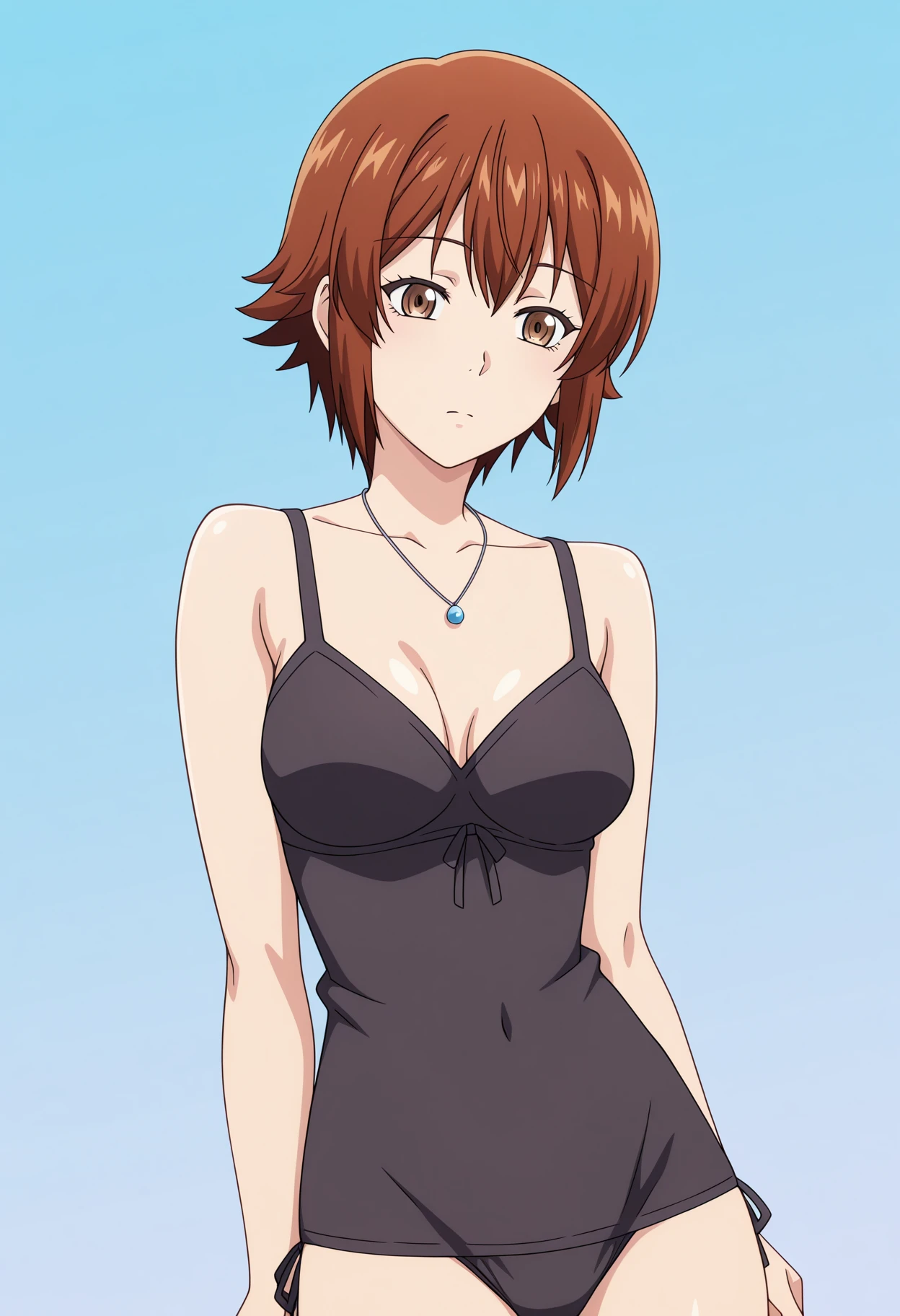 shichisakotegawadef, brown hair, brown eyes, jewelry, short hair, collarbone, medium breasts,