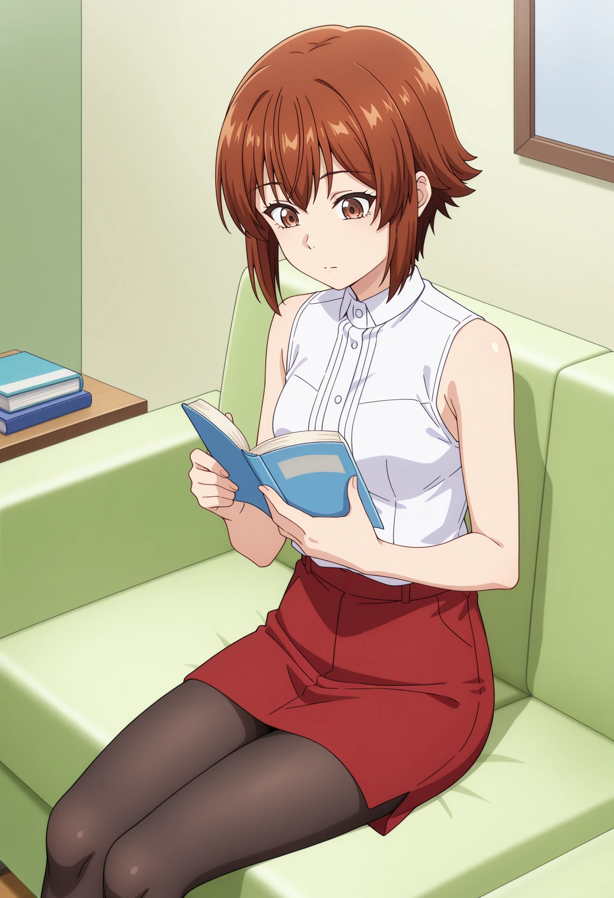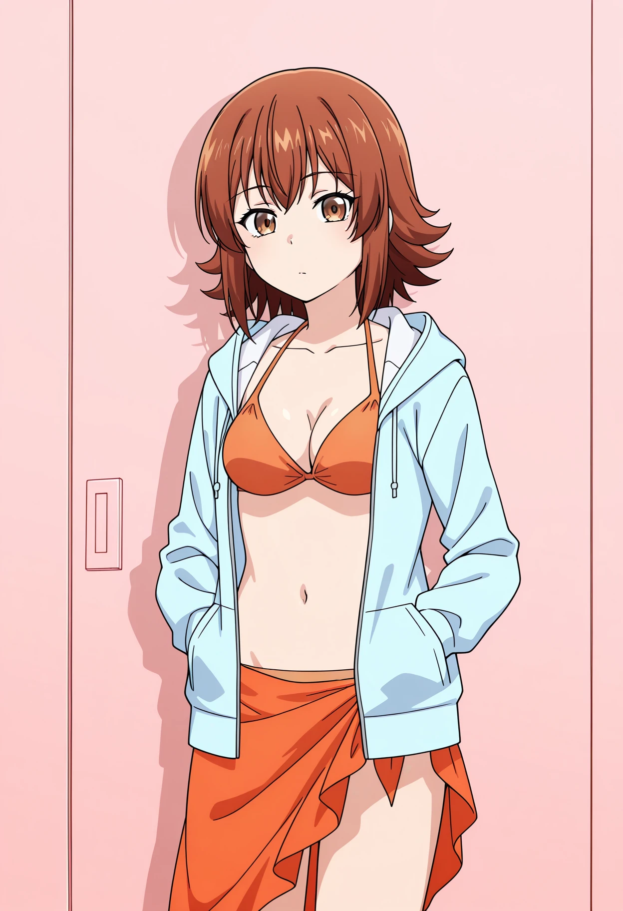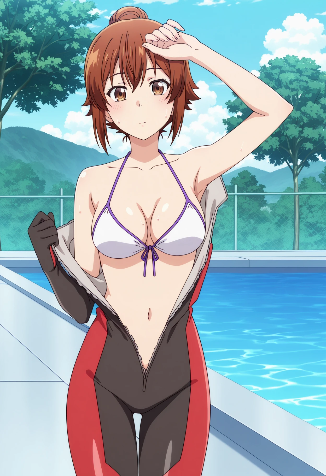 shichisakotegawadef, brown hair, brown eyes, jewelry, short hair, collarbone, medium breasts,
