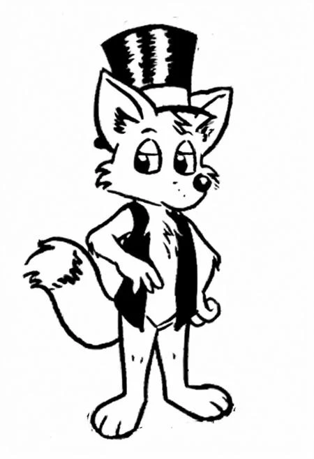grayscale, white background, line art, 1boy, solo focus, Ozy, fox cub, fox ears, fox tail, male anthro fox, furry fox, sleeveless vest, top hat,