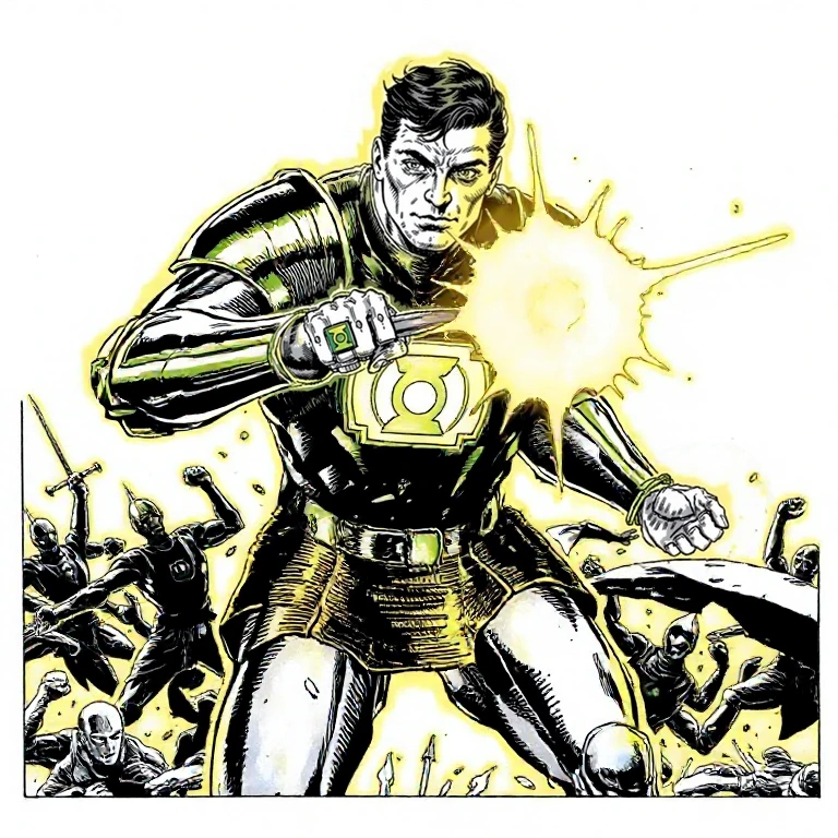 This LORA should pretty reasonably generate the right shape and look for the Green Lantern ring and costume. It should also be somewhat flexible, though inpainting may be needed for details.