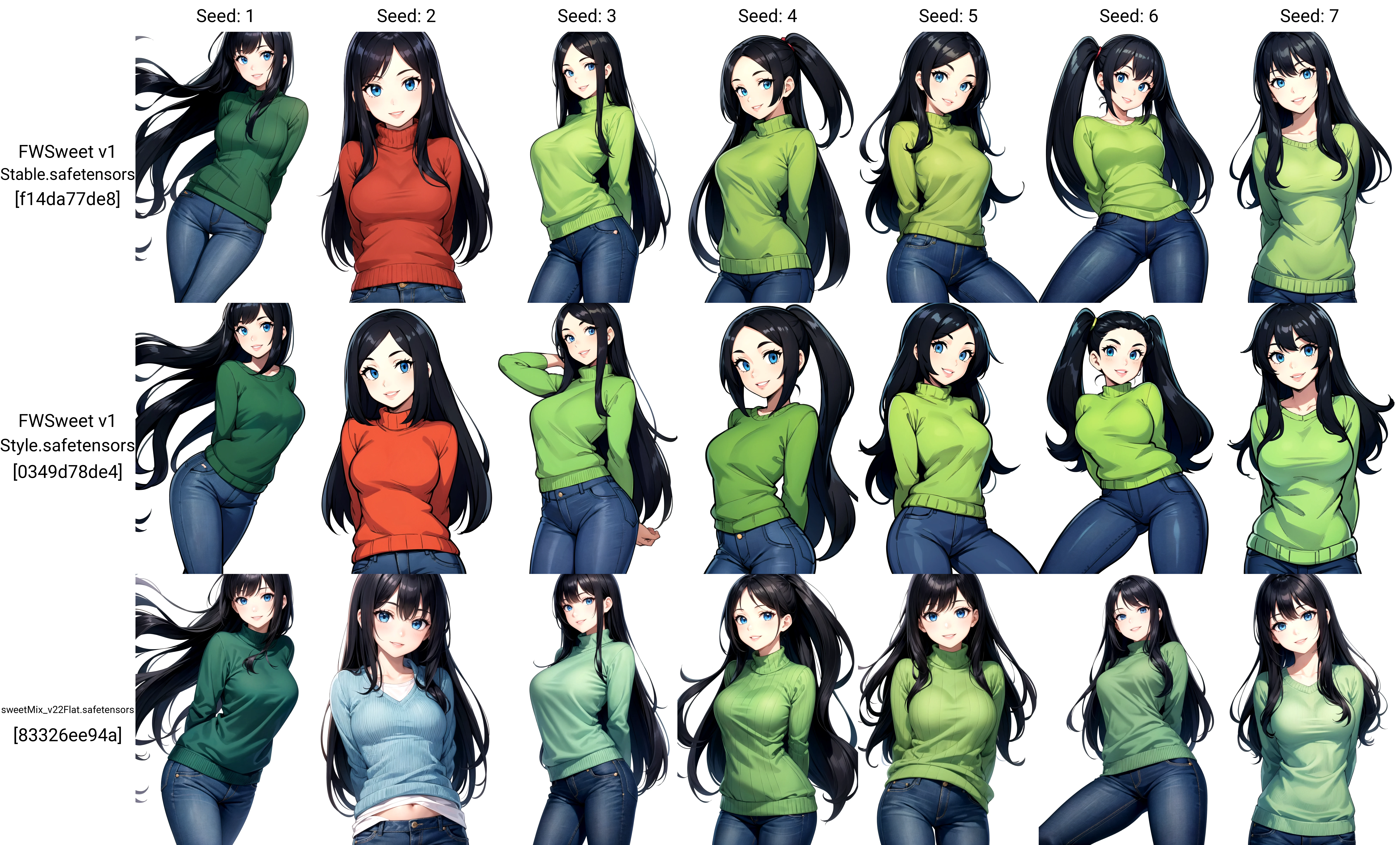 This is a mix blatantly based on Sweetmix v2.2-flat. That has good ??????? and compatibility, but I don't like the style. I want to make a mix that has most of the good ??????? but with a style I like, and here it is! I posted many comparisons, most pictures on both versions are same parameters. Pick your favorite version!