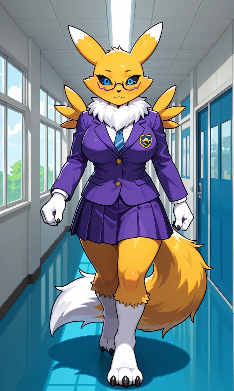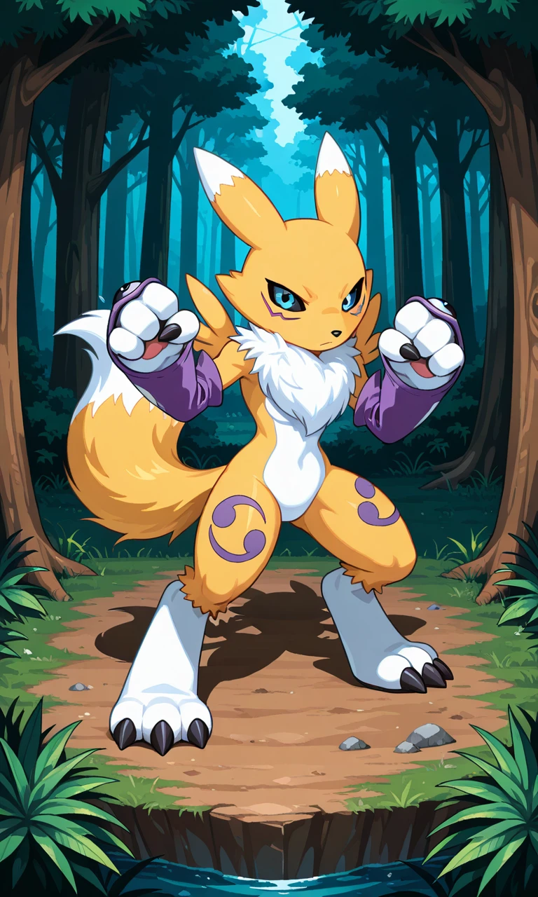 Renamon_(Digimon), anthro digimon, yellow fur, two-tone one, blue eyes, black sclera, white neck tuft, tail