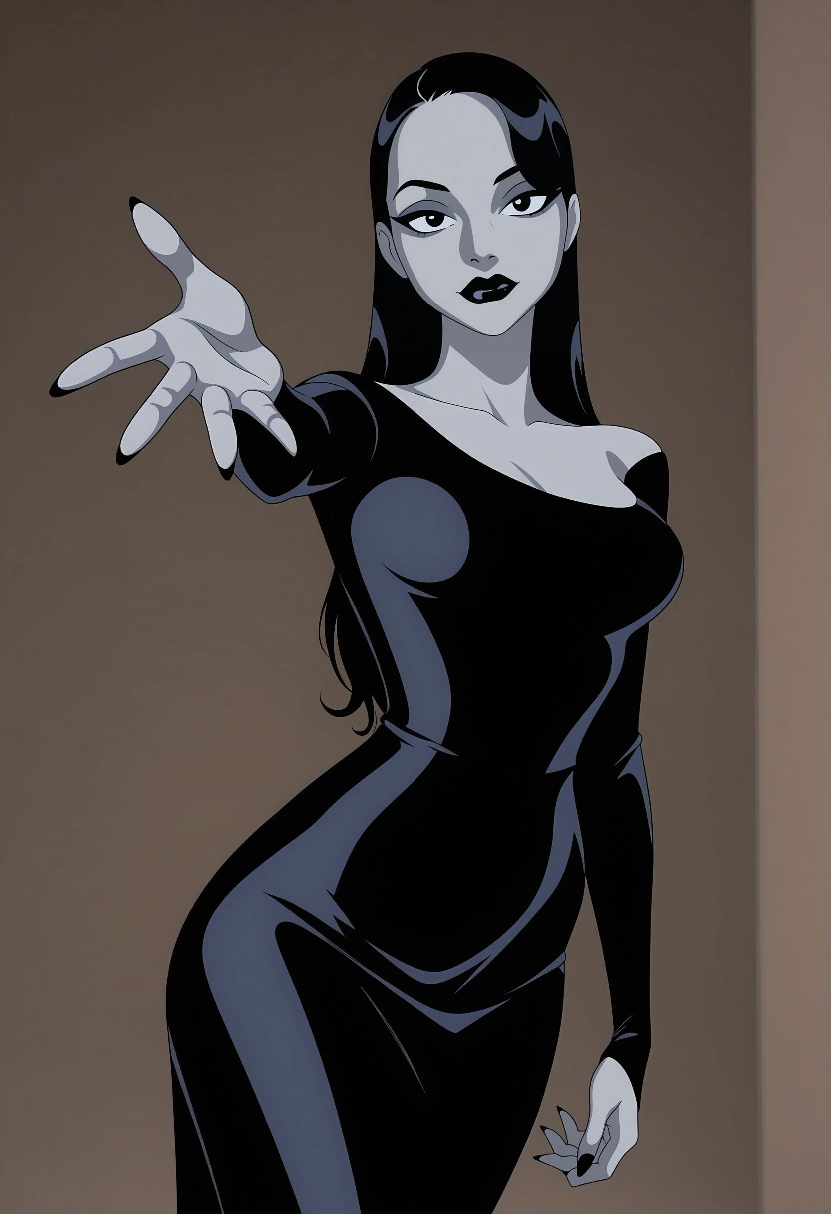 Human look: 1nqilf, 1girl, black hair, long hair, black eyes, black lips, dress