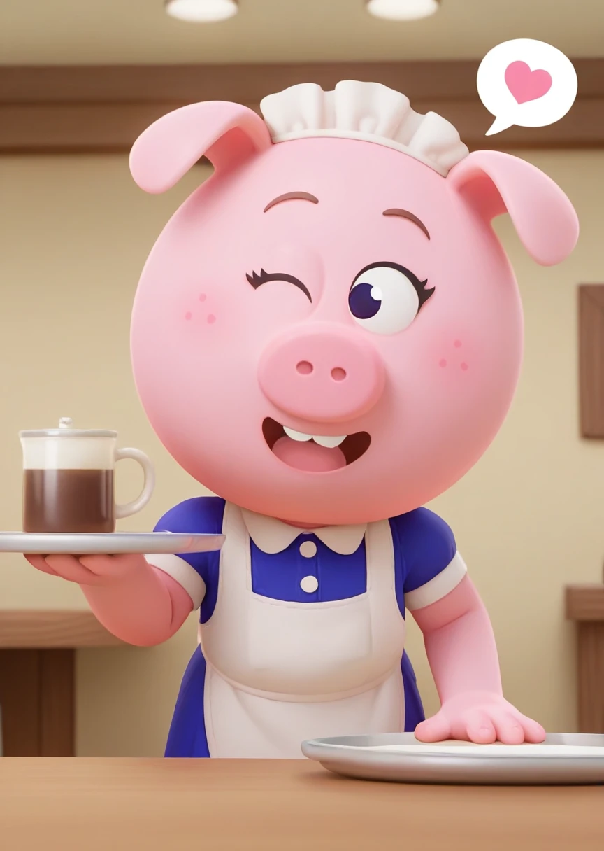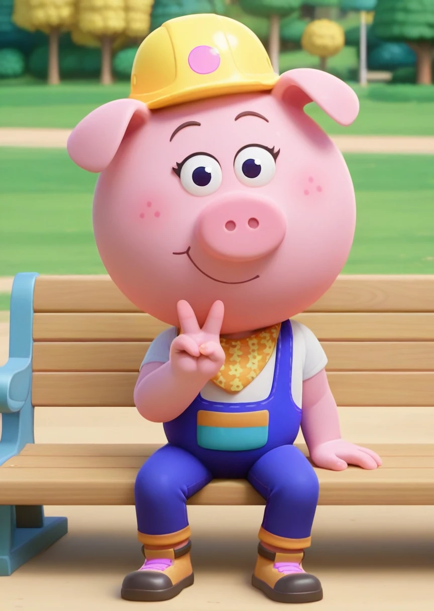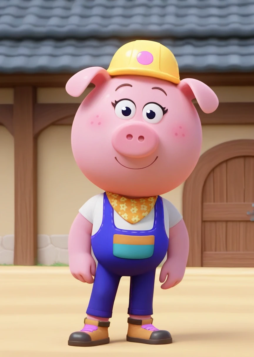 cornepibu, furry, pink body, safety helmet, blue overalls, scarf, white undershirt, boots,