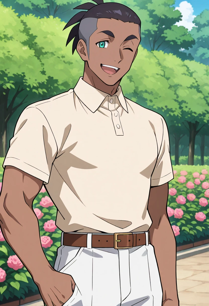 RaihanPKMN, RaihanHatless, 1boy, no_headwear, spiked_hair, black_hair, short_hair, dark-skinned_male, aqua_eyes,