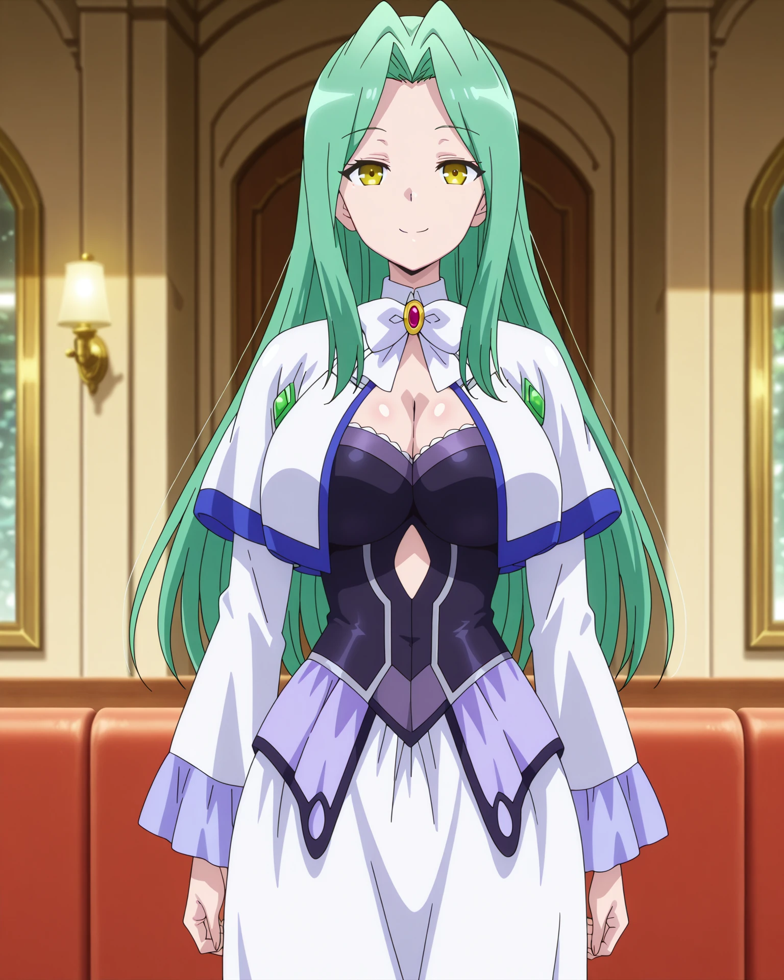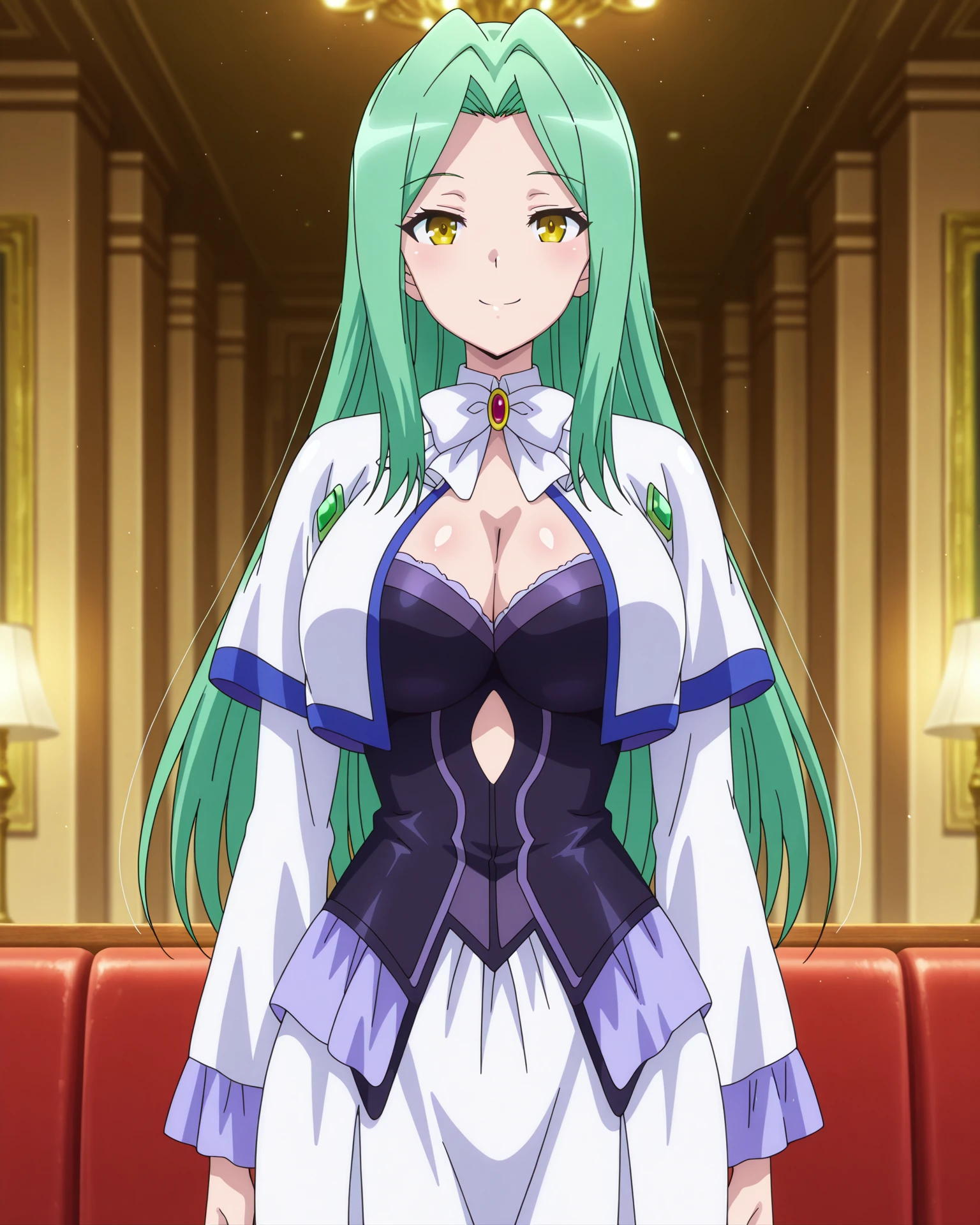 — Graceful, gorgeous, and just a little bit chaotic behind the scenes—Charlotte is the kingdom’s favorite green-haired magical bombshell! 💚✨ As one of the top-tier court magicians (and a certain duke’s daughter), she’s got the brains, the boobs, and the boldness to light up any room—literally. Whether she’s charming nobles with a warm smile or causing magical paperwork disasters behind closed doors, Charlotte balances elegance with lovable scatterbrained energy. Sweet, supportive, and maybe just a tad too excitable—she’s the magical big sis we all wish we had. 💎📖