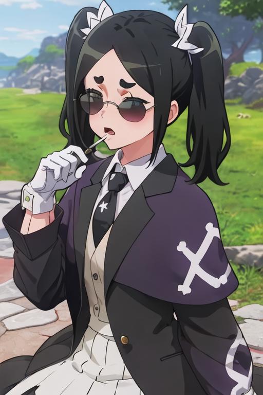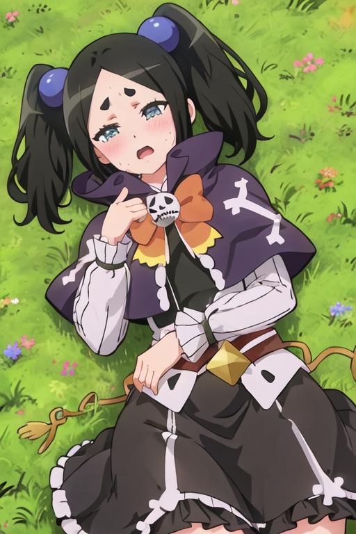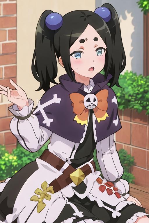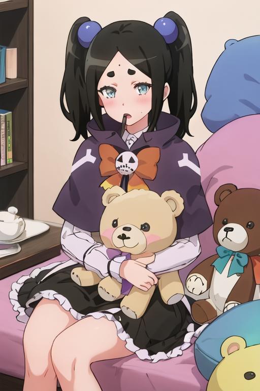 The trigger word is toxico_dannar_futokunoguild, and the recommended tags are best quality, masterpiece, highres, solo, {toxico_dannar_futokunoguild:1.15}, black_hair, twintails, blue_eyes, hair_ornament, blush, thick_eyebrows, open_mouth.