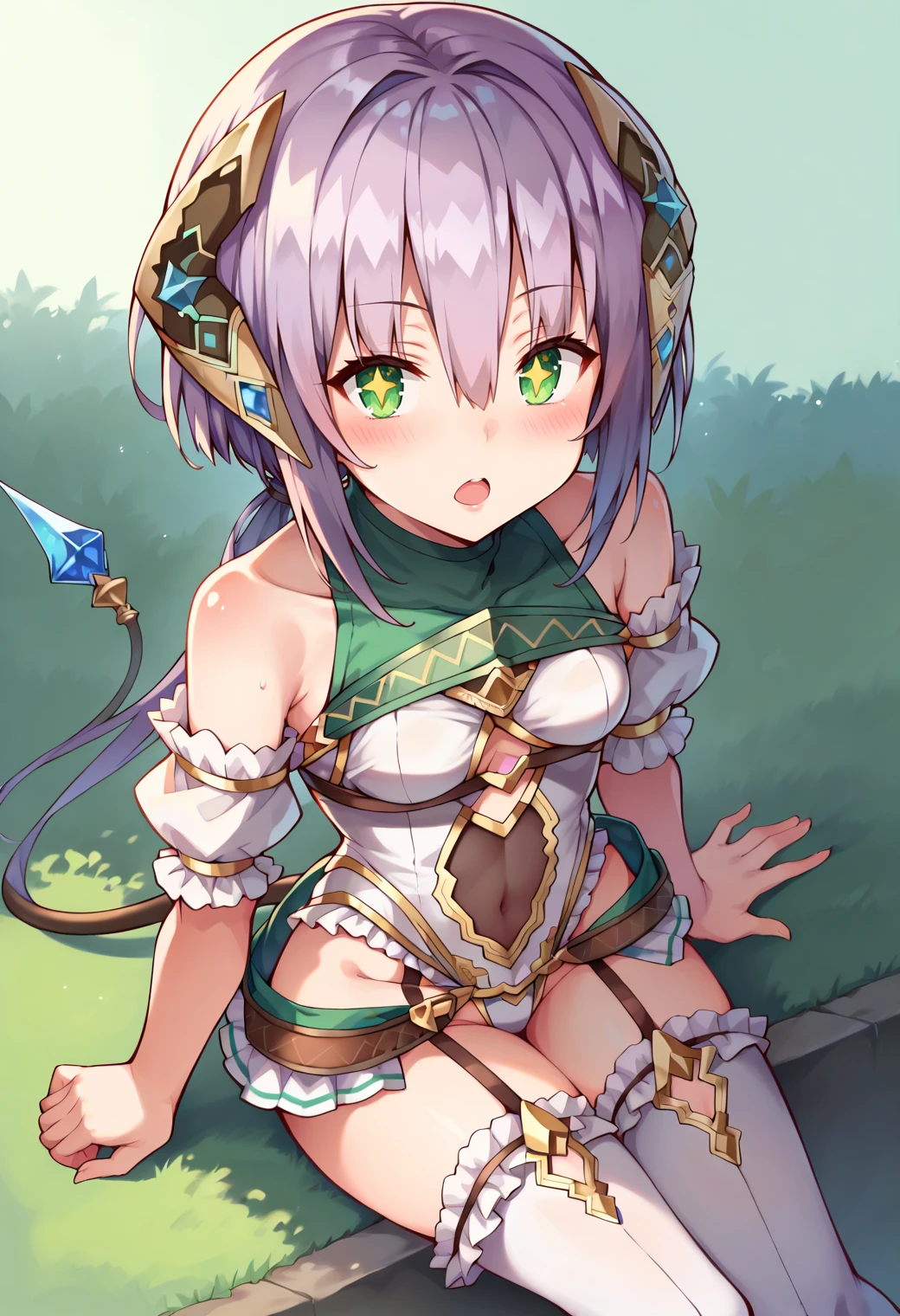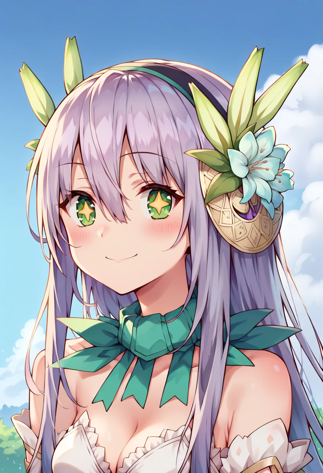 plachtasoph1base, head ornament, hair between eyes, green eyes, + +, star eyes,