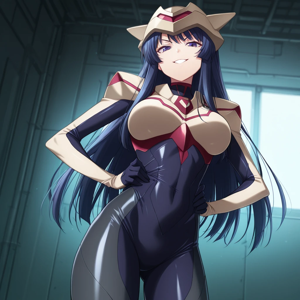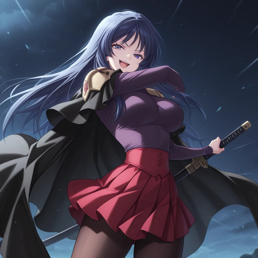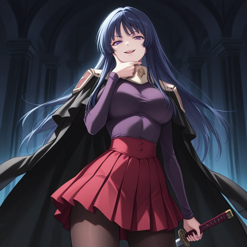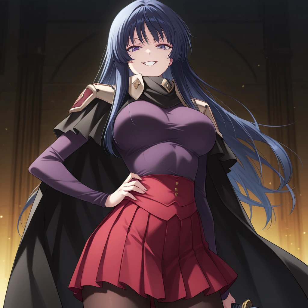Character: 1girl, long hair, dark blue hair, violet eyes, large breasts,,