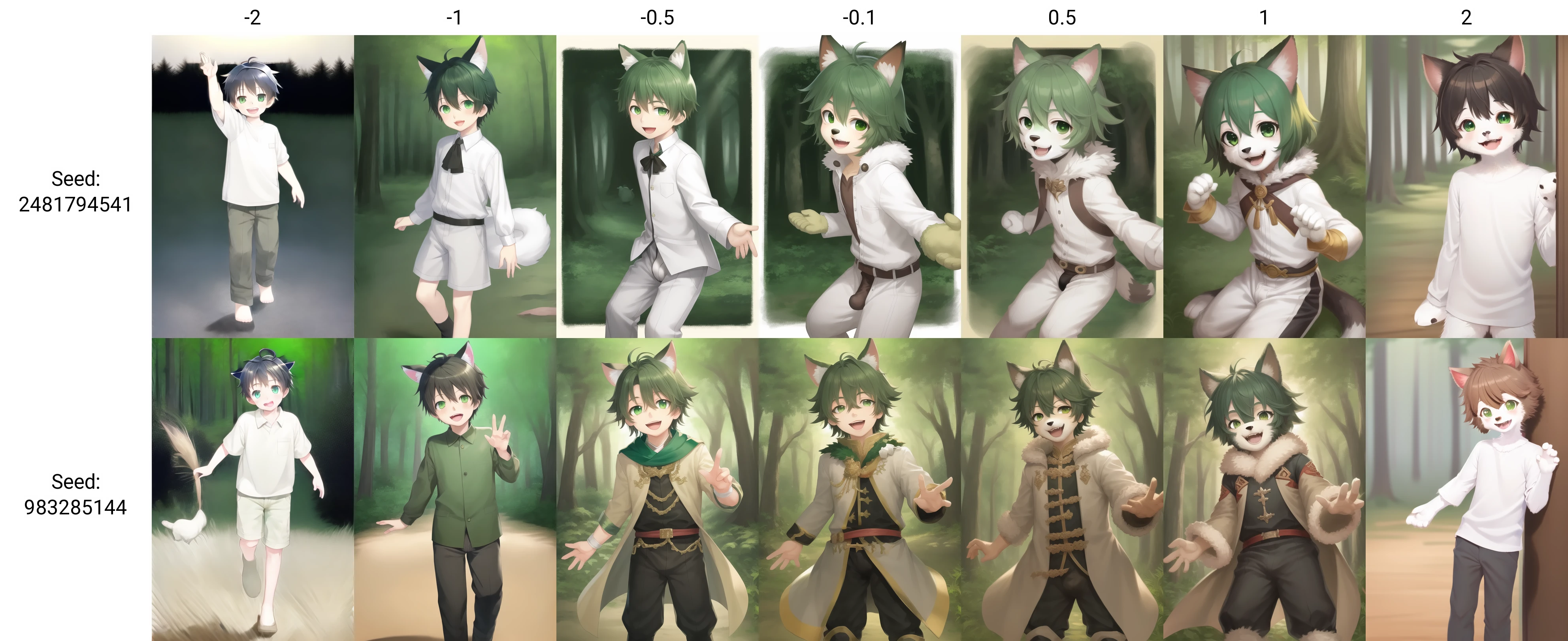 In your commands, specify the areas for desired transformation such as "boy","solo",''ShoTA'',"furry", "animal ear", or "tail", and incorporate this Slider LoRa feature. Adjust its weight parameter within the range of -1.5 to 2, where a higher value corresponds to a greater density of fur coverage.